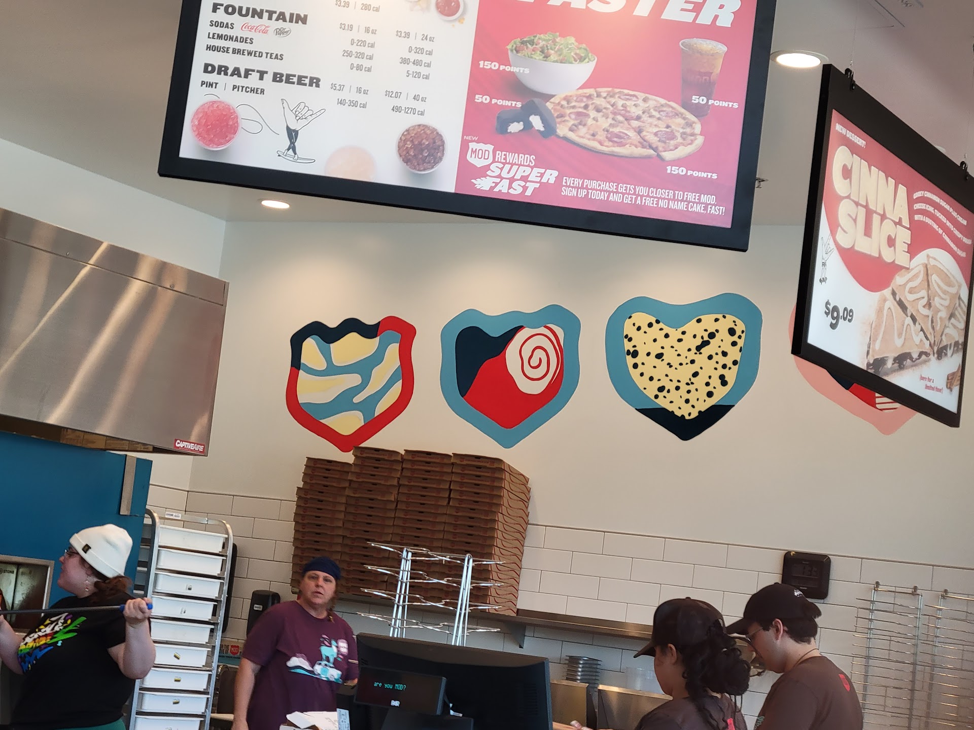 Read moreMost MODS are over the top with their friendliness when you walk in, that didn't happen here. I think I may have heard one person say a quiet hi to us- we were the only people in line. Stood there for several minutes without being acknowledged. As soon as I told my kid we would be walking out if no one acknowledged us and at least said they'd help us asap, someone finally said they'd be right with us. The person who walked in after us was also shocked at how long any acknowledgement took them. After finally ordering, I saw the gals in the kitchen touching their faces and hair- that's just nasty. I mention these because I want improvement and I'd like them to be successful. You cannot be doing that in a restaurant! The pizzas were still good, although a bit overdone. Hope they can get it together because my family loves MOD and this location is so much...