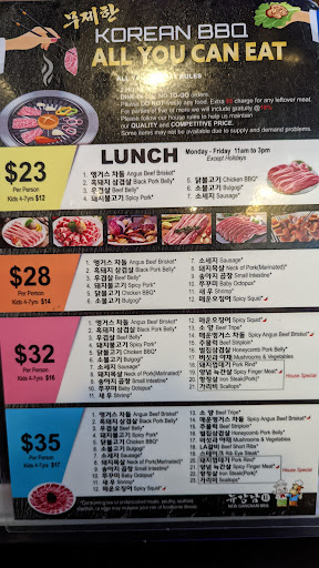 So As soon as I gotten pregnant w/ my first baby I stopped coming here bc I’ve noticed it wasn’t sanitary, no fresh meat & the last time I’ve eaten there it had really made me sick. From the restaurant all the way home. I was craving KBBQ Twice in One Week so I came here. Best believe it was the last time… My bf & I noticed we smelt old meat. An the little sides wasn’t fresh! Neither was the lettuce it seemed as if they gave us left overs or meat that became old during that time of week & the lettuce smelt like they leave it in the same fridge as the meats… My Bf had stopped eating an kept going to the bathroom bc he wasn’t feeling any good, he kept getting sick. I wanted to give it the benefit of the doubt but as we finished I’ve gotten sick real bad (not bc I was pregnant) but bc the meat was just old by the smell & look of the meat an side dishes. I didn’t want to have a bad look on myself bc I’d never want to leave a big portion of leftovers, I feel bad everytime but please don’t be like me. If it’s not good please let them know, yes they’ll give dirty looks & a non happy face but they know what they did wrong! & they know they’re losing money. Also I honestly don’t think they clean the tables with clean rags or a good cleaning spray it’s sticky most of the time, & it stinks sometimes. I’m sure they haven’t even had a Food/Restraunt Inspection They Are In Need Of...