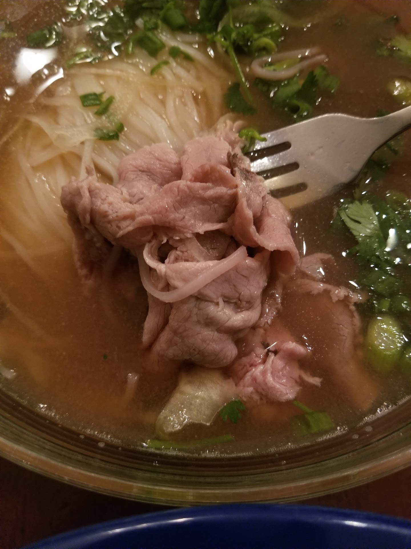 Read moreCool pho spot, open till 10:30 at night, prefect for late dinner eater like myself. I got the steak and meatball, which is my go to when I hit up a new pho spot, so I can have the same dish to compare. The broth is very flavorful and they definitely load you up with it! Everything else is kinda just what you will expect, I ordered a large but I think you still kinda just get a standard bowl size amount of noodles, I would say roughly 1 - 1.5 pack of ramen worth. (I do love noodles tho, so your mileage may vary). I also order a boba black tea milk tea on the side, not going to lie, generally pho place don’t have great boba (beside the ones that are part of some chain boba place like happy lemon) but dang, this one definitely take the cake on the worst boba I ever had, it basically tasted like water with non-sweet boba. Although, it’s the also the only boba place I have went that uses crushed ice, and I love crush ice so there is that. Overall, I will recommend the spot and will definitely go back. Their pho is great! Just avoid the boba and you will have a...