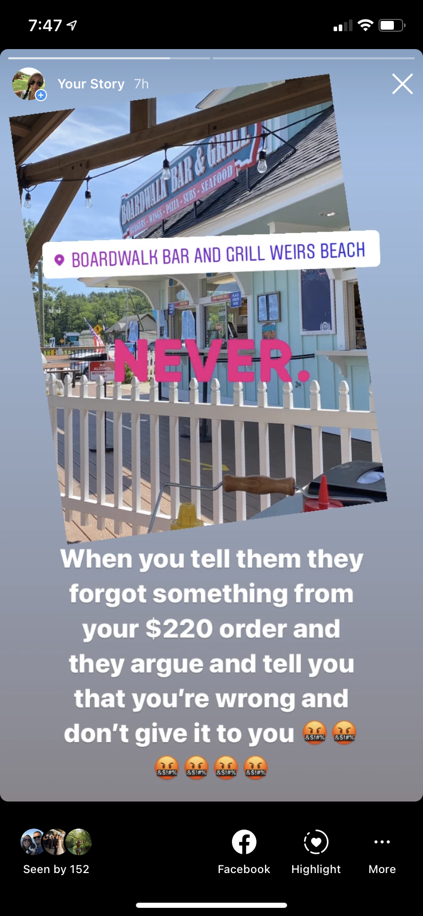Read moreI'm giving this place one star only because the service was good. The food on the other hand was terrible! I ordered the fish and chips which was $15.99 and it was terrible. The fish was clearly frozen!! I understand that fish isn't always fresh but honestly Grotons frozen fish would have been better! I went with four other people 3 of us had the fish and chips, one of us had the chicken teriyaki, and one had the pulled pork sandwiches. We also ordered 2 apatizers. The bill came to just under $150. absolutely ridiculous!! You can go to the weathervane restaurant at the other end of the board walk and have a great meal for a lot less and fresh fish and lobster. I have been going to Laconia for the past 34 years and needless to say I will never go back to this restaurant! I should have realized when I looked this place up online and saw no menu or website that it wasn't going to be good. I definitely don't...