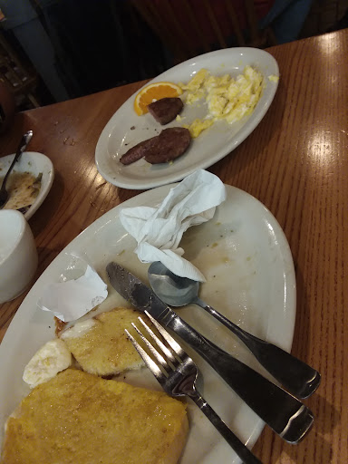 My family and I come here often, as it is a favorite of my son. We came tonight around 6:45, and after a few not so great visits over the last few months, we decided we will not be returning. Our waitress, I wish I had caught her name, was awful. My husband & son ordered traditional pancake meals, & I ordered chicken & dumplings, after waiting for 15 minutes, she told us that she checked on our food, & itās almost done. We waited another 15 minutes, couldnāt find her anywhere, & then finally she brought out our food. At this time, we were literally her only table, & she had spent the first half of our visit, sweeping up her section all around us. When we got the food, my husbandās bacon was practically raw. I mean, my jaw dropped at the fact that not only did a cook think it was acceptable to serve that, but that a waitress would also think it was acceptable to bring it out! I told my husband to send it back, but he didnāt want to prolong the evening. When she brought our food, she finally asked us if we wanted any biscuits or cornbread to which I replied, both. Mind you, she let us sit there for 30 minutes without offering it to us while we were waiting on food. Then she comes back & says that theyāre out of cornbread. I let my husband & son finish their meals quickly & I took mine to go, because I had to get out of there. When we were leaving, we saw her outside chit chatting up against the dumpsters with 3 male coworkers, & at this point, she had other tables in her section. Not sure why a waitress would ever need to be out at the dumpsters when she has customers. Like I said, I really wish I wouldāve gotten her name, or had seen a manager on our way out, because she needs to be held...