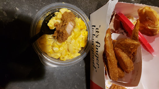 Read moreI didn't give 5☆ because the chicken was extremely moist, not exactly sure how to explain other than the batter/skin was all mashing together and you couldn't eat it properly. It's as if they cooked it some time earlier and had been storing it in a damp hot box for a while. It was by far the worst I've ever gotten from KFC. I was craving it, too.. so super underwhelmed. It's usually the bomb, but if we go here again and it's the same we will not be going to this location for sure. This was last night, Sunday April 10th, 2022. We got a bucket, 3 sandwiches, sides, biscuits, jalapeños and drink. Everything else was as expected and yummy. The chicken was yummy, but the texture and lack of batter/seasoning because it all stuck together in the bucket and it would stay in the bucket because of the clumping of it mashing into a paste like texture in the bucket. We immediately came home to a starving crowd of teens and it dismayed us..... also, plan to be in line for a long time! Strange when you could literally see all the chicken just sitting in tubs being kept hot, so the wait didn't make sense. The staff in the drive-thru were extremely courteous. (We didn't see the state of the chicken clearly until we got home or we would have...