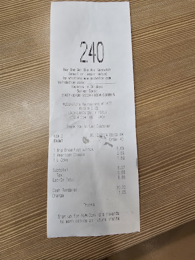 Read moreThe food was good. The prices were good, but the service was appalling. The lady in the drive thru rushed me through my order and was speaking to me and the people in front of me as well, making it very confusing to order straight. I was patient with all that except that I decided to add drinks since I found out they no longer have biscuits and gravy. The older lady rolled her eyes when I asked her to add 2 drinks. I even looked past that. She was rude asking me what size, using the words COME ON and YOU'RE HOLDING UP THE LINE, but I had already told her large BEFORE SHE GOT SNAPPY! It was when she handed me the drinks that she pushed a little too far with her words. This was the very last thing that she did because I was about to drive off with my order complete. I can't believe she told me that she was not being rude today BECAUSE normally she said, they make you go around to the end of the drive thru line all over again to add something to your order. Ha Haha ha Bull spit!!! You see I'm smart enough to know that since she had NOT taken my money yet when I drove to the front window, she could add my drinks and that she said I wasn't being rude, that she was just annoyed. That's no reason to be rude and all her extra talking was the exact reason the line was held up! I understand that it is difficult to run the front drive thru and back drive thru at the same time. I used to work for McDonald's for years. I was not happy with the experience but the...