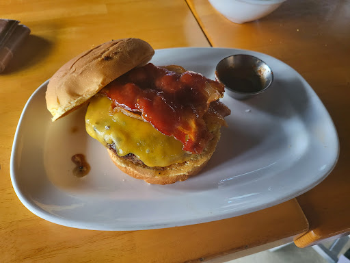 I got a burger with a salad and asked for it to be medium well, which online says slightly pink. It was full on pink throughout (as was my gfs burger, so we had to grill ours more.