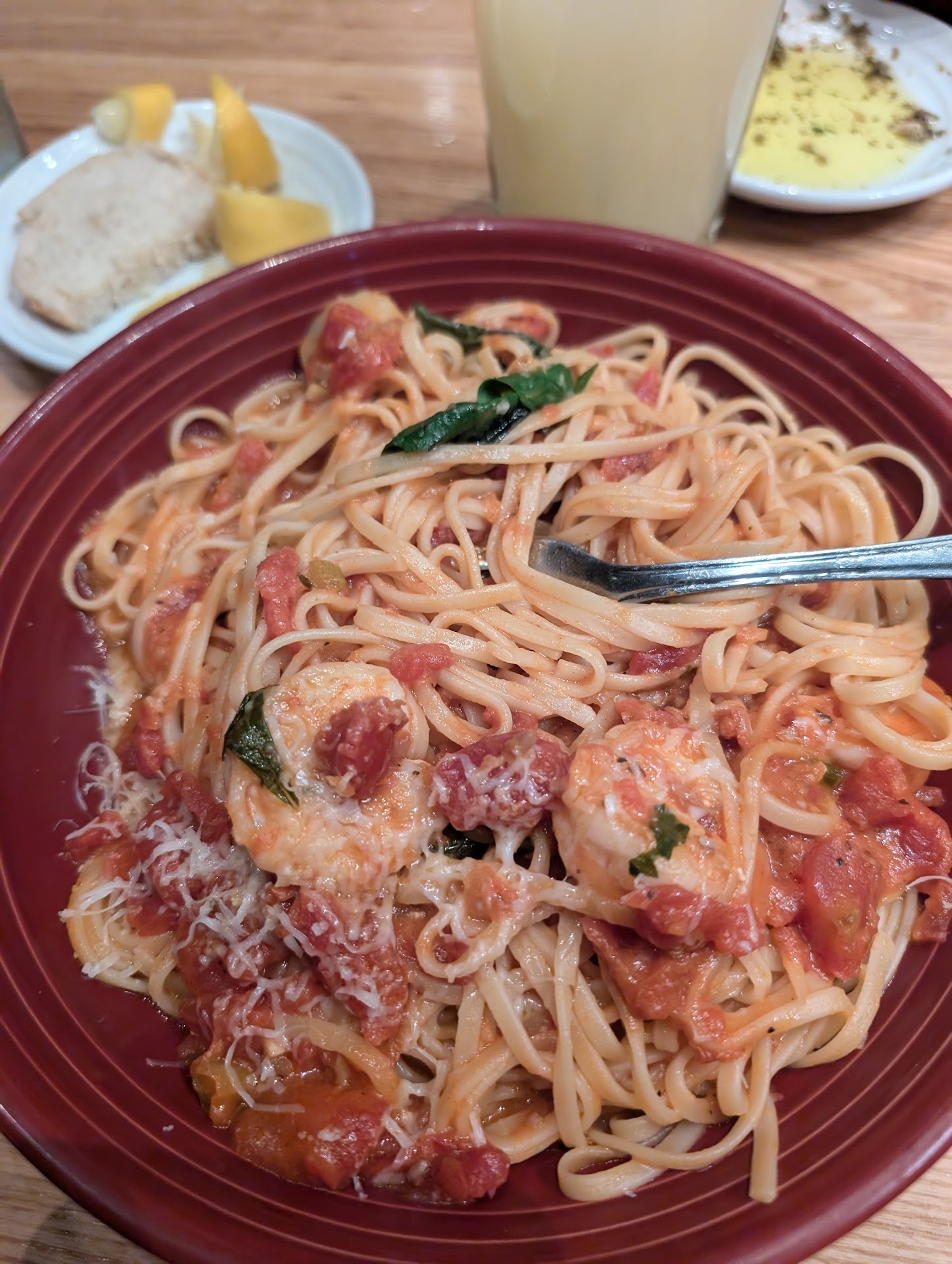 Read moreEverything that could go wrong, did. I'll start from the beginning. I ordered a Sangria and my wife ordered a mango margarita. Waiter said they did have a mango margarita. 15 minutes go by, still no bread.....only to be told they do not have mango margaritas. Okay, no problem. Wife gets hot tea, instead and we order food. Then we get bread after we ordered. Soup and salad comes out and before we can take one bite, here comes the entrees. We get an apology for that. Okay, no problem. Then after taking a second bite of my pollo rosa maria, I see that it is cold, wet and pink. That was on the edge. I can imagine what it was like if I had cut it down the center. I mean, not even close to being cooked. So, now I am aggravated. That gets sent back. Manager comes and confirms it was not cooked and it was "rushed". Why was it rushed? We had just been served soup and salads less than minute before it was served. At this point I want nothing more to eat, after some raw chicken in my stomach. So, the bill comes. I am charged around $48 for a simple chicken entree and one Sangria and a cup of hot tea. Why, you ask? Because the mango margarita that the waiter says they have but they don't, was on my bill. Before we left the manager said she knew we had a bad experience and said if we came back to ask for someone (don't remember name)and they would give us a free meal.Why not make it right, right there and then? Raw chicken? Really? At minimum, my wife's meal should have been free. I can look past some mistakes, but the raw chicken and a looong wait time for drinks and bread, with only half capacity, was a deal breaker for me. I've been to 5 different locations and this one was...