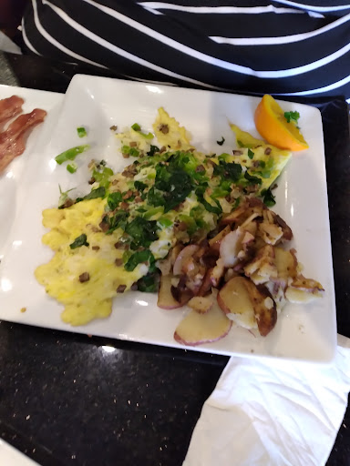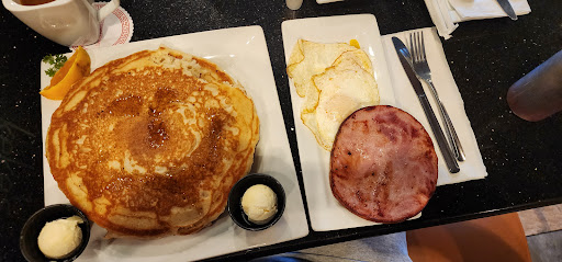 Read moreWe just ordered to-go breakfast from here. My husband ordered the cheese steak omelet, and I ordered the pancake combo with the granola crunch pancakes. First impression: the food was somehow still warm, despite the restaurant being very busy when my husband picked up the food and it taking him a while to get back home! Awesome! Second impression: the pancakes were massive!! I was seriously blown away. lol Iâve been to a lot of breakfast places and have never seen pancakes so huge. I ordered 2, but I should have only gotten one, because WOW. Third impression: so much bacon! Most places only give you 2 or 3 slices with breakfast combos. I think I got 4 or 5! Wonderful first impressions. :) However, the pancakes were supposed to have granola and bananas on top, and they only had granola. I paid extra for the âgranola crunchâ upgrade for my combo, so I was really disappointed. The pancakes were fluffy and flavored well. They tasted fine, but they probably would have been amazing with the banana. The granola was no longer crunchy (which was ok, since we ordered to-go, and they gave me extra granola on the side without us asking!), so it was almost like an oatmeal pancake. My âover mediumâ eggs were a little over cooked. I love my yolk runny, but it was mostly cooked through. And the bacon was quality baconânot the thin cheap stuffâbut I think the bacon at First Watch is wayyyyy better. You get less at First Watch, but itâs super thick and a little sweet. The bacon here is good, but nothing to write home about, in my opinion. But again, you get a good amount of it, so if you like salty, semi thick bacon, itâs perfect! I wasnât blown away by the taste of the food, but I would definitely love to eat in some time to get the full experienceâincluding bananas on my granola crunch pancakes. lol (Oh, and my husband liked...