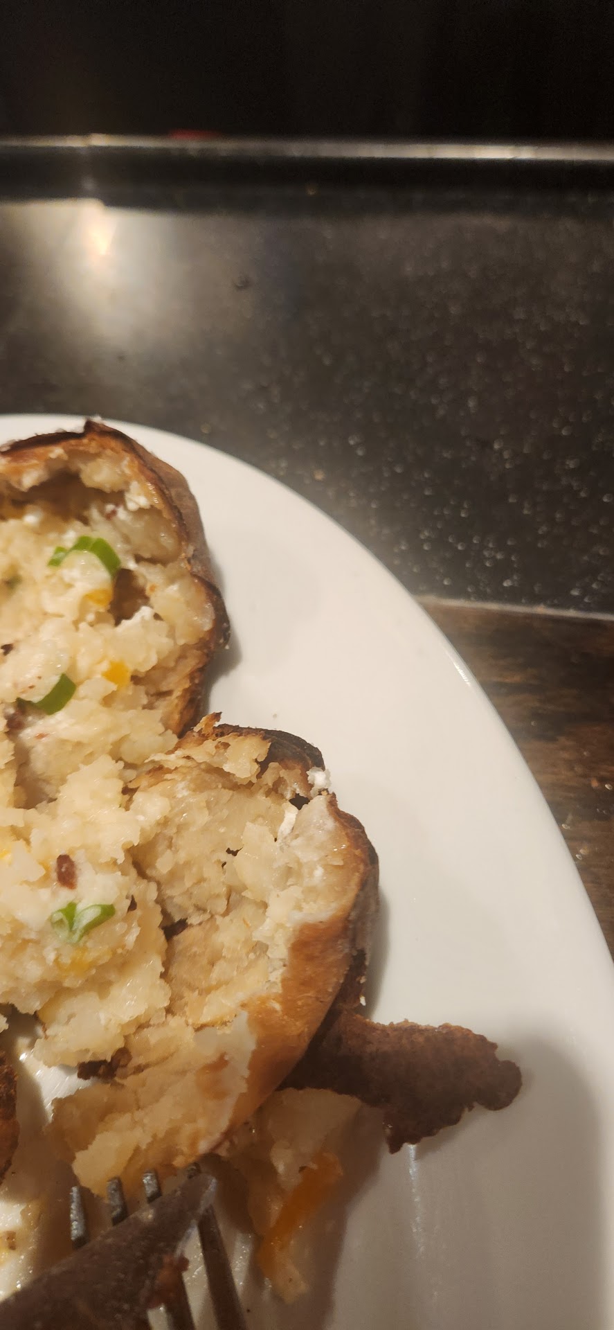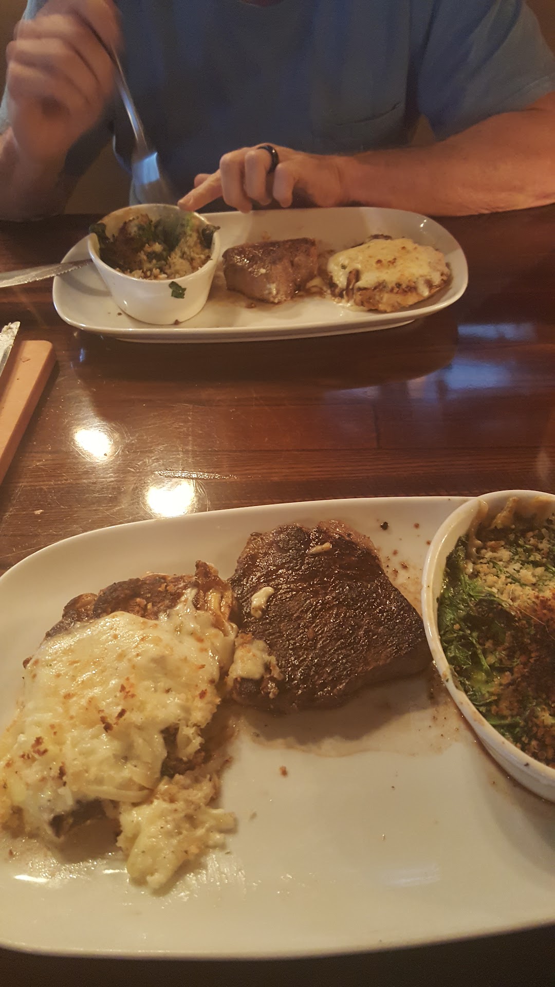 My side of brussel sprouts that I ordered with my steak & potato was delivered before the rest of my meal. I did not request this. I eventually received my steak and my potato was old. You can tell when an older baked potato is being served. In addition to the old potato, my steak was metallic and unpleasant tasting. I ordered a medium steak but it was temped by the manager at 105 degrees. I requested a manager to temp the steak in front of me. I assume this is why the couple at the bar eventually made comments about my behavior. I was not happy in the slightest at this point. My food arrived at different times for no good reason. It arrived and was poorly cooked and plated. It was 35 degrees away from the medium temperature I requested. The crust was warm which didn't make sense to me. Aren't crusts baked or broiled to brown the top? Overall it was poorly executed and my experience was poor. I did not want another steak after the poor tasting steak I was served. I've had undercooked steaks but there was so much more going on here.