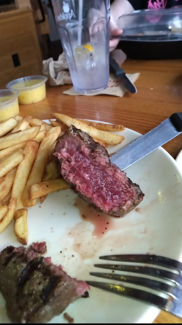 Read moreI've been here so many times and consistently have issues. Almost a month ago they made my steak rare, it was supposed to be well done. Then they burned it. The next visit the hostess was assisting the waiters in carrying out and passing out the food. But prior to this, I was in the restroom with the hostess she exited the stall and went straight out the door. She did not wash her hands then showed up at our table to pass out our food. We told our waiter they took our food back put in on new plates and came back with our food in 4 minutes. But it took them 45 minutes to make it the first time. Very unacceptable. The 3rd visit I told my waiter that if my 2nd drink was going to take a long time I would rather not get it. She told me and I quote "well I've already charged you" and basically made me wait an additional 10 minutes and then never came back to our table. The manager was our sever the rest of our visit. In return I still left the server a tip and the manager stated he was sour server because she was bust and he wanted to help her. But she was going to the table behind us and in front of us. I felt discrimination played a part and I'm very unhappy with Apple bees service all three of my...