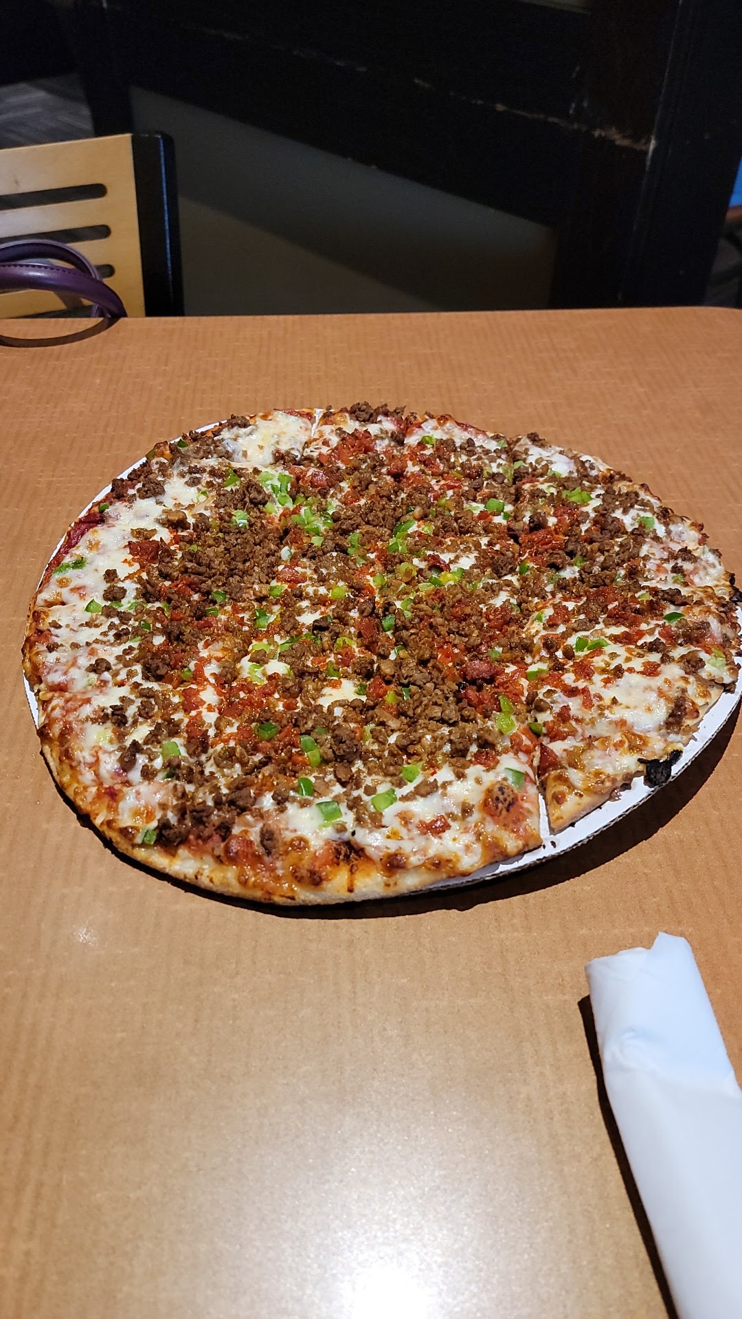 This is my first time eating at this place. At any of the restaurants really. The atmosphere is nice and our waitress Tori, was excellent. We had two orders of garlic bread, loaded cheese fries, barbecue wings, a 10in 4 topping pizza, and the southern fried chicken salad with Thousand Island. The food itself was very tasty and very flavorful. The barbecue sauce on the wings has a bit of a Tang to it, they actually call them Tangy barbecue wings. Salad and homemade Thousand Island was also delicious. The fried chicken is very flavorful and the junior size is filling enough. The loaded cheese fries come with a mound of two types of cheese and bacon which makes everything great, but the flavor profile with these fries was delicious and Rich. The pizza, is its own category really. It is a crustless pizza that is full of toppings, but the toppings are crumbles. So whether you're looking for pepperoni, sausage, beef, Etc, you're going to get crumbled meat toppings versus sliced or chunkier of anything. The sauce on the pizza was very flavorful, it's not as sweet as I prefer, but it was a good solid pizza sauce. The 10-inch is cut Chicago style So it is all squares for the most part. Overall the place is great and the food is very flavorful. There was three of us with all of that food...