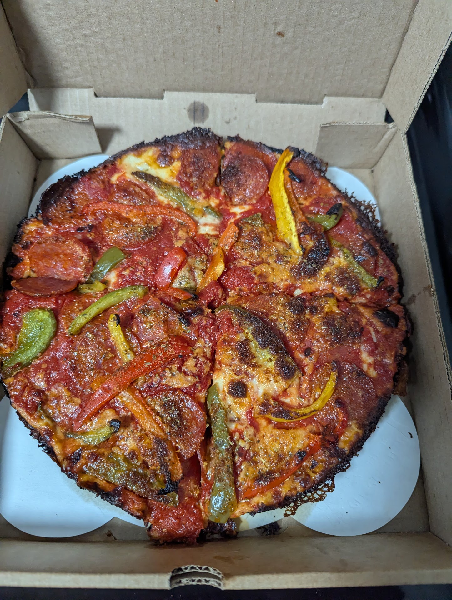 Toppings, you could tell the veggies were fresh had a nice snap to them. Pepperoni’s were fine. Sausage, was really good! They have it written that it’s their blend and you could tell it’s fresh made, or in house, just not the usual and I loved it. Nice big pieces good flavor, the star of my experience!