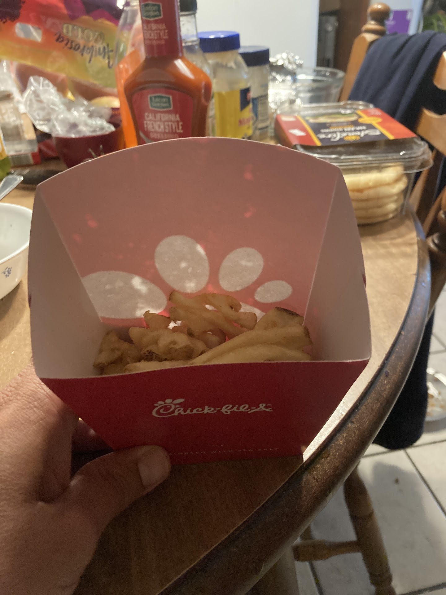We stopped at this chick fil a several times in May 2021 after our sons track meets in the area. One night they brought us out our food and the girl bringing out our drinks lost grip of the cup and then smashed the cup into our door. The milkshake that she smashed ran down between the door panel and window. It also went all over me. When I opened my door there was chocolate shake running out the bottom of the door panel.