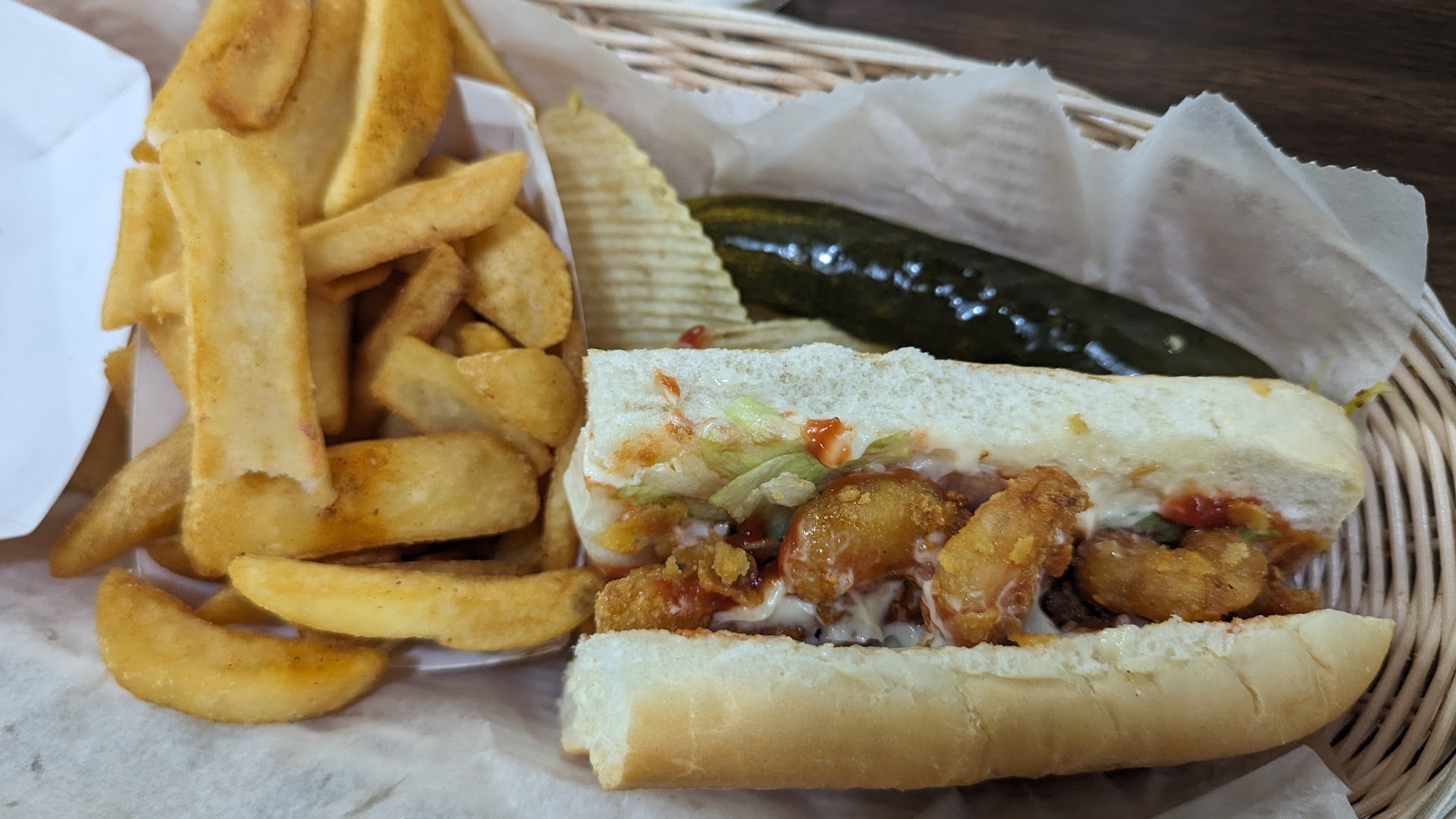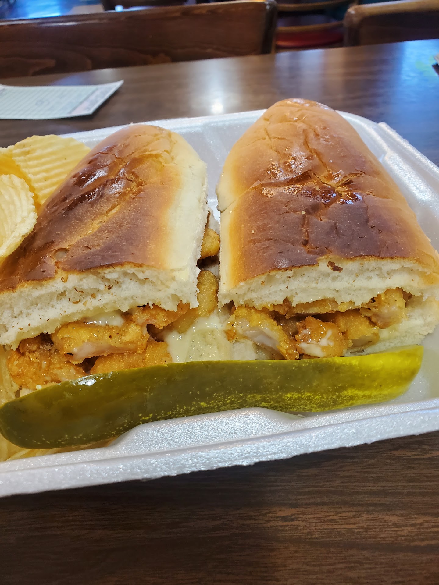 Read moreWe stopped at Chris poor boys for lunch. This restaurant has a cozy ambiance everyone there were very friendly and hospitable. Our waiter Max was the best, he has great customer service and hospitality. We ordered a cup of chicken and sausage gumbo it was really fresh and tasty. We also ordered the muffffaletta, we asked how big it was because we were sharing it he told us it was big. He wasn't lying it was huge. It came with chips and a kosher pickle. The bread which comes from a local bakery is topped with sesame seeds it's warm crispy on the outside soft on the inside the fresh meats and cheese were accompanied with the fresh olive relish that didn't over power but gave it its pizzazz. That 1st bite just makes you smile wow, now thats the money bite. I am not a muffaletta expert but that was one of the best sandwiches I have ever had. I will definitely be back this will be one of my go to places when in Lafayette. 5 full...