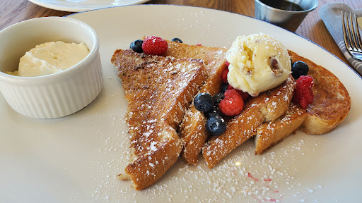 We also dined here for brunch and had the French Toast. This entree was a miss for me. The menu suggested that the bread was "thick-sliced" brioche, but the slices seemed quite thin to me. The flavor of the french toast was quite good, but I'm not a fan of a more custardy textured toast. It rings as soggy to me. I understand there are those who like this, but it's just not my preference. I would order again.
