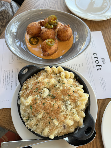 Read moreThe menu had a good variety of interesting choices. To start, we had the smoky mac n cheese and lump crab hush puppies. The mac and cheese was just ok until you got one of the rare pieces of bacon, which really elevated the flavor. The lump crap hush puppies are a little harder to describe. They were definitely not the consistency of a traditional hush puppy...they were softer? More moist? For my main course, I had the flat-iron steak. The steak was just ok. I would have appreciated a more seasoned meat. The chimichurri was not enough to elevate the flavor for me. We also had the beef short ribs with grits. This seemed an interesting pairing, but was actually pretty tasty with the vinegrette reduction.