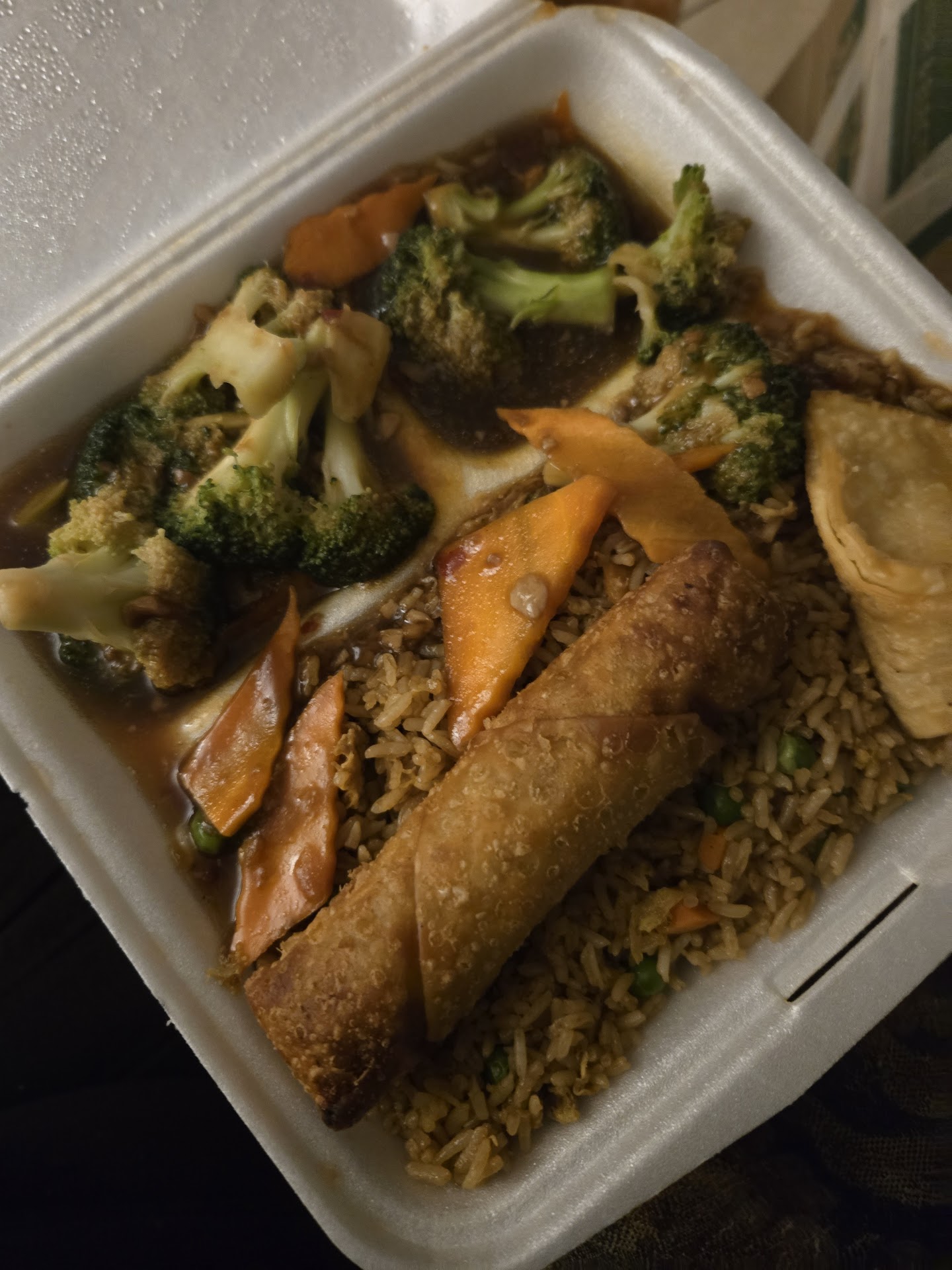 Read moreI ordered dinner because I am nightblind and it was late. The driver was late getting here....and when my food came, not only was it cold, but the beef and broccoli only had broccoli in some beef juice. WHERE'S THE BEEF???