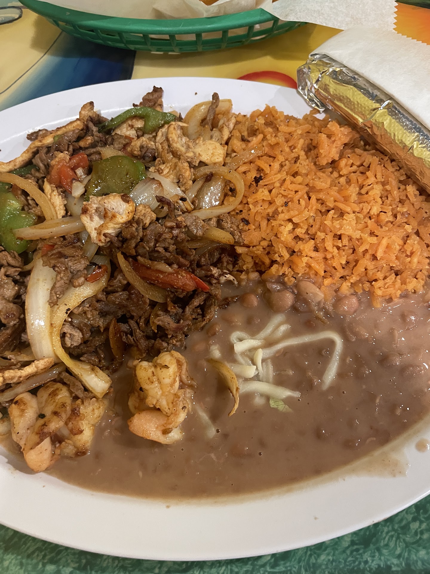 Hole in the wall hidden away location but this remains the best Mexican in the area! Prices are high for basic common ingredients, dingy atmosphere, and non English service but as usually, cannot turn down this place! A huge menu, incredibly friendly service despite the linguistic barriers, and classic Spanish fütball on the TV. My parents dishes were huge for the price, very tasty all over from horchatta to my mom's vegan burrito. My sister noticed the beef in her dish was tough, must have been an older cut because mine was fine. The interior atmosphere is copied from a Magdalena spot I visited some years ago. The Tuesday tacos are amazing. Shrimp and sausage fajitas are my pick, horchata is that authentic treat I'll take any day over the American sodas, and no other place in town gets everything right...