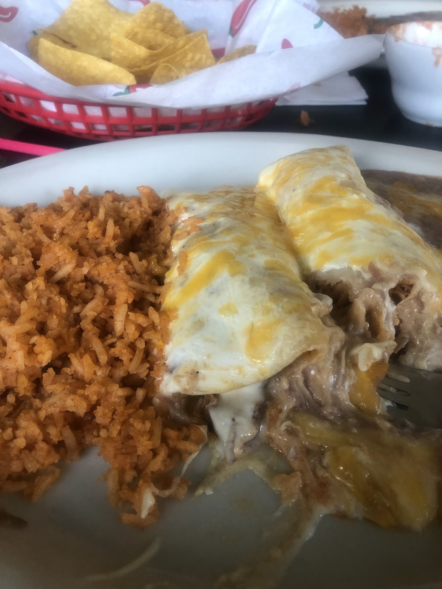 Read moreExcellent Service & Delicious Food ~ We were acknowledged and seated immediately. The decor has been given a much needed update. I love that they put in a bar which serves amazing delicious affordable drinks in authentic pottery bowls and cups. We were served tons of chips and salsa. The chips were warm and delicious I believe we at 3 baskets. When we sheepishly asked for more we were greeted with a smile and promptly served without hesitation. My husband ordered the El Toro Burger which he said was really juicy with tons of poblano peppers, jalapeños and cheese. I had the Del Toro Enchilada with cream sauce plater served with beans and rice. We both finished our meal leaving no leftovers. This is rare for me I usually only eat half. El Toro is a great addition to our little town. We will be...
