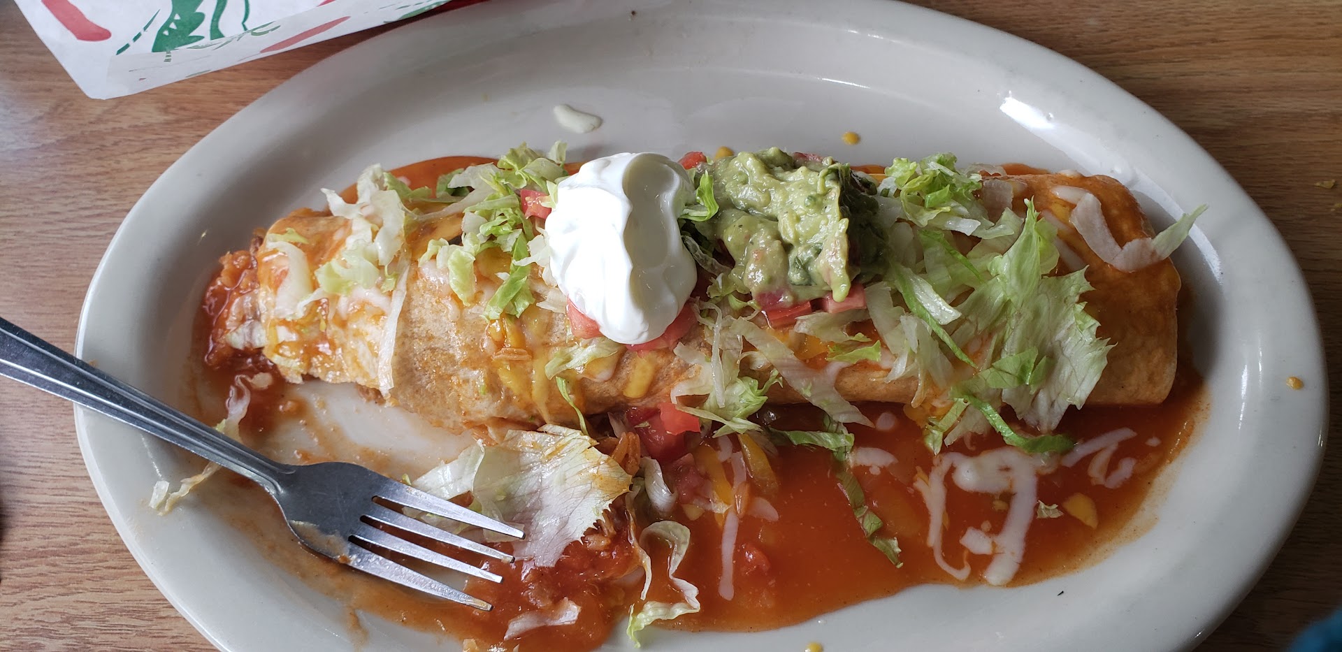 Locals need to get out more. While passing thru Burns OR. we decided to stop and get Mexican food for dinner. Well the restaurant was about to close, so we asked for our order to go. I had a special request of no onions or lettuce on my steak burrito. This should have been a simple request for a $20 burrito. Not only did I get onions on my burrito, but there were so many it was frustrating to eat. The cook needs to learn proper plating skills. He/she put the rice, beans, avocado, sour cream and pico de gallo in/on the burrito instead of on the side??? It made for a real mess. It wasn't possible to eat it without a knife and fork. They dont offer queso at all??? The beans had a sour taste to them like there is lemon or lime in them. This too made the burrito unpleasant to eat. The atmosphere was small town cafe at best and really needs updating. The staff was pleasant but absent for most of the 15 minutes we waited for the order, that we called in 10 minutes before arriving. Our total order was an asada burrito, nachos and two sodas. The bill was nearly $45 before a tip. I would not recommend this place based on my personal experience. I don't like giving low reviews, but I need to be honest for the sake of others. $50 with a tip was definitely too much for the quality of the food and service...