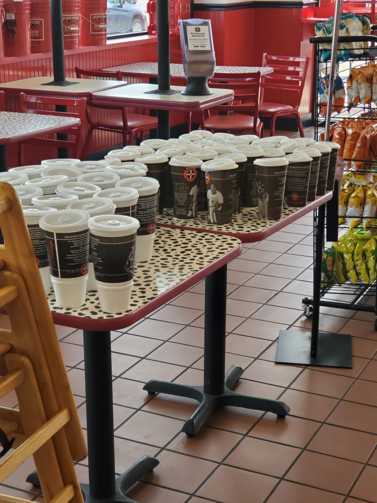 Went to Firehouse Subs on Saturday April 24th, 2021 between the time of 1:30pm and 2:00pm. The sandwiches never disappoint but on this day the employees did. I am sure employees go through a on-boarding process of what to do, what "NOT" to say when getting hired. But then again I maybe mistaken. There was inappropriate talk behind the counter amongst the employees about certain customers. This should not be discussed or even mentioned in the public eye when employees are working. Also what is the matter with Firehouse Subs putting the drinking cups on the tables for the customers to pick from. (Picture attached) We are worried about wearing masks and spreading the virus, but did you happen to think that the virus can also spread on the cups that are in the middle restaurant. I mean employees are wearing gloves for food handling procedures and probably follow the best practices of anyone entering the establishment. But it seems to be pretty hypocritical to have someone wear a mask on entering an establishment, only to find out the cups are out in the open for...