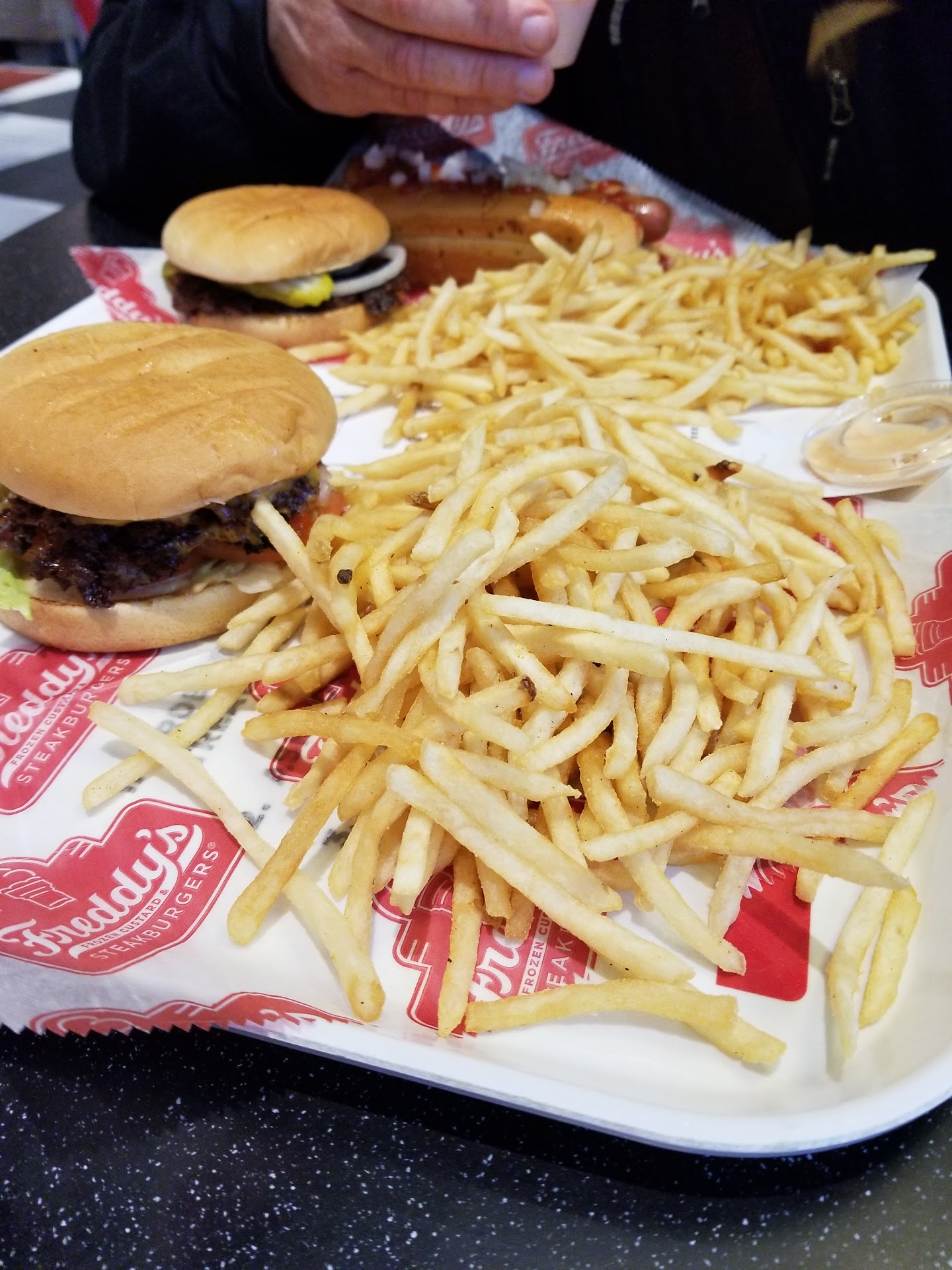 Read moreI love Freddys! I feel like it's one of those places where "what you see is what you get" and in their case, they make delicious diner food and decadent desserts just like you'd expect from a retro inspired diner, if not exceeding expectations. I wasn't really yelping much the first two times I went there so I don't have pics of it, but both times I had a turtle sundae and it was great. My sundaes had a LOT of pecan HALVES....not pecan crumbs....pecan HALVES melts...drizzled with warm chocolate sauce and caramel with a cherry on top (literally!). As for FOOD food, the only sandwich I've ordered thus far was the patty melt. It was great the first time and even better the second time :) you can't go wrong with grill top beef, cheese and grilled onions....but you CAN enhance it ten fold if you eat it with fry sauce YUM!