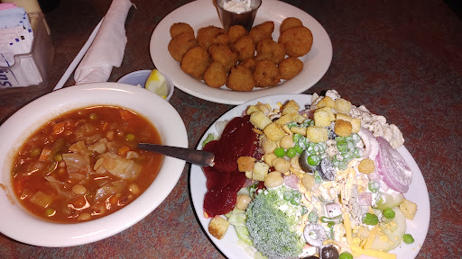 THE WORST EXPERIENCE. My fiancé and I wasted on date night dinner there. We first both got the sea food buffet at $14.99 a piece! I broke a tooth trying to eat a piece of fish that was EXTREMELY hard. We felt like we got the leftovers! The food tasted like it had sat in there all day. I told them I could not eat it and asked if I could get something off the menu and if I still had to pay for it. She came back and said we still had to pay for one of them. We agreed because we didn’t want to ruin our night and the waitress we had was very nice and understanding. We ordered steak (rare) my fiancés was RAW. The salad bar could’ve been better, there was chopped bologna instead of ham! I remember waiting tables back in my day, it never looked like that. Plus, Our bill was $60 and some change. Oh and as i was typing this review, a young waitress decides to spray windex on the door and I watched the spray fall toward my fiancé food as he was eating. We was in the booth by the door! The fumes made me completely loose my appetite. This is not a lie, I took my steak home to finish cooking it. They need a new cook. I should get a refund and I...