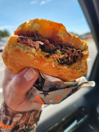 Read moreFirst visit. Drive thru carry out. Saturday around 1. One car in parking lot. No one in drive thru. Waited almost 5 minutes before someone answered. Regular pork sandwich combo. $10. Not a very big portion of meat, on a small bun. Dripping in sauce, meat dry. All could taste is sauce. Krinkle fries regular size plentiful, but greasy, limp. Just ok, I've had better and worse. Really class A bbq should have plentiful flavor, moist, and sauce served on the side. Piled on thick. Fries should be fresh cut on the crispy side. Will try again, maybe the...