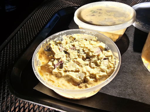 First the best ever: The BBQ chicken, pit beans, mac & cheese, slaw, and banana pudding, were the best ever. This is real deeply smoked, dark brown, BBQ chicken, fall off the bone tender. I have NEVER had restaurant BBQ chicken this good, and it was better than my own, home smoked, chicken. All these items were the best (or tied for best) I have had at any restaurant. The mac & cheese is very cheesy, with rich, deep flavors. The slaw was crunchy, lightly dressed, and reminiscent of Tony Roma’s cole slaw. The beans are thick and loaded with meatly umami. I would never normally order banana pudding as I generally think it is gross. This banana pudding tasted like fresh banana and had chunks of fresh banana.