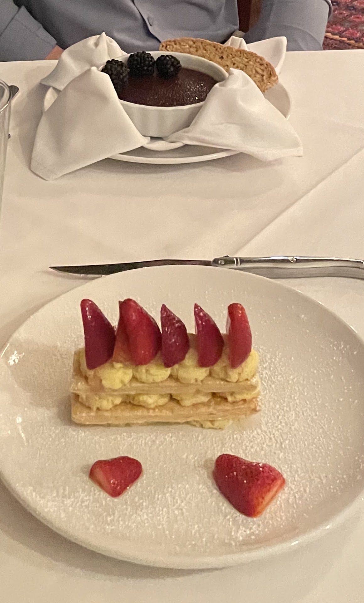 And just when we thought the experience had peaked, dessert arrived: Seth had a Belgium dark chocolate crème brûlée and I had a strawberry pavlova that was sweet, creamy, and oh-so light.