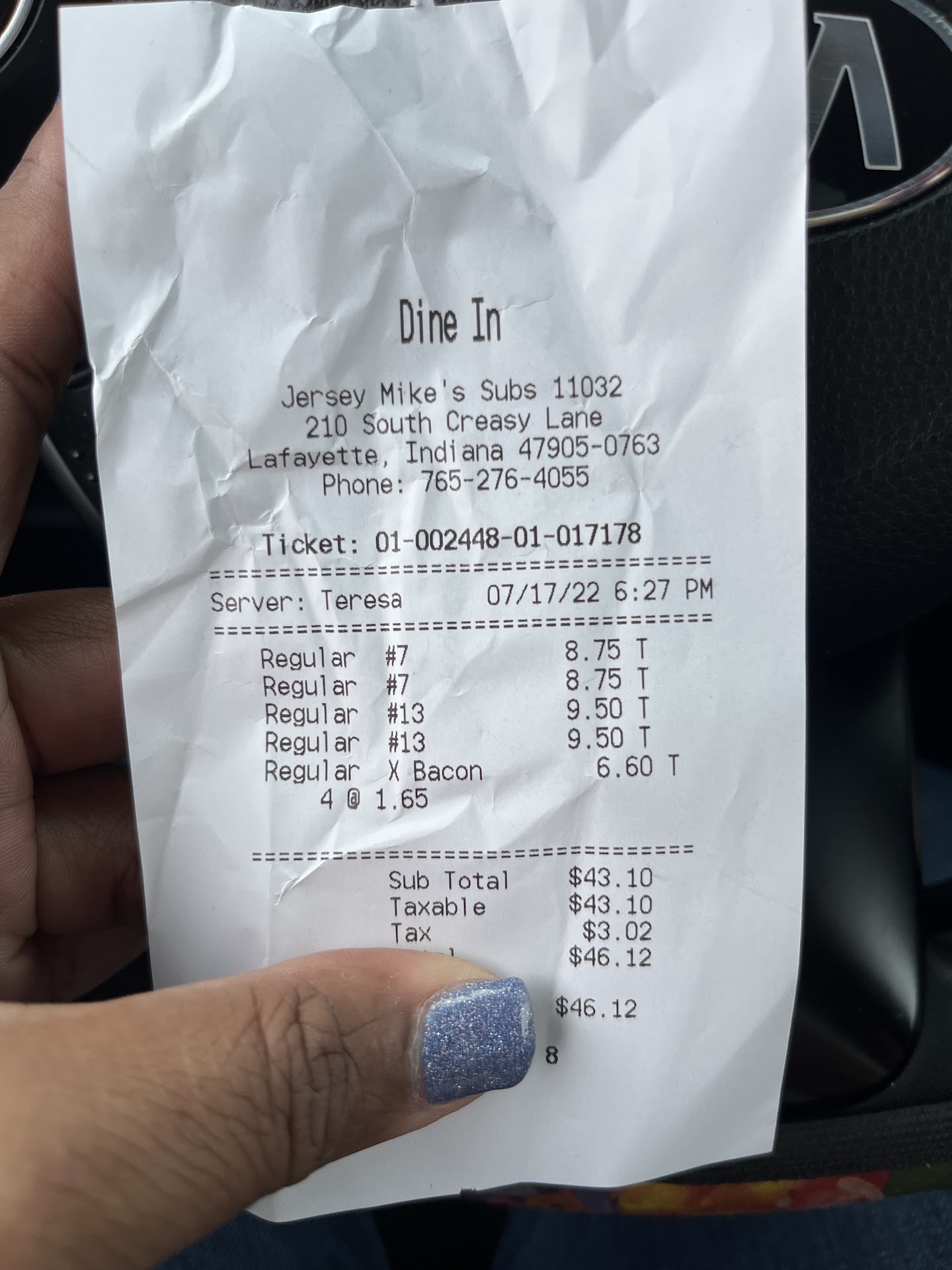 Read more6/3/2023 Yet another outstanding Jersey Mike's experience! So much better than other sub shops in town. Once again, though, it is their exemplary staff that really makes for the best experience. The manager on duty, Patti, and the rest of the staff are amazing. Thanks for this dining experience!