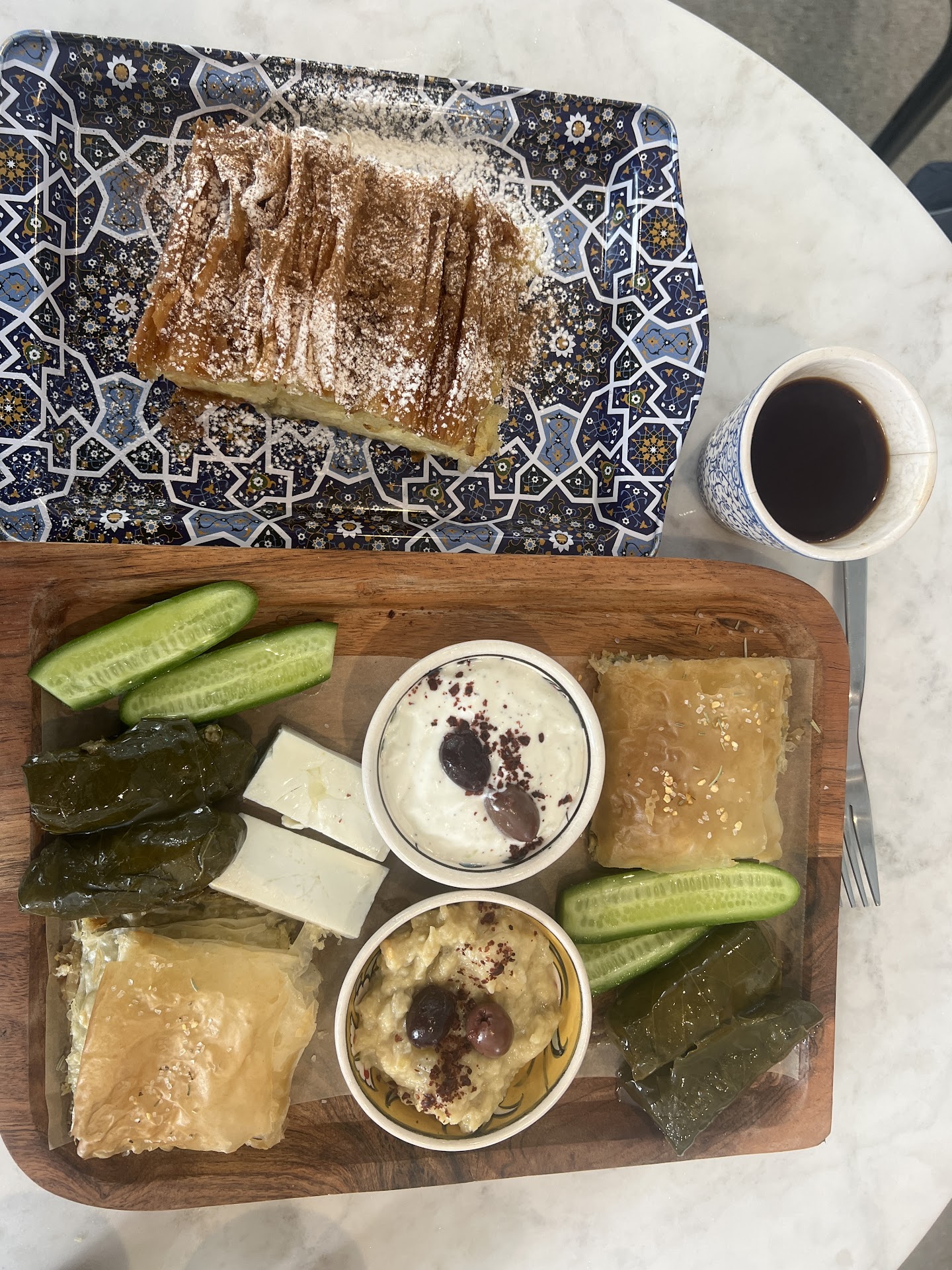 Read moreWe were trying to find something light and small to start our day. Previewed the menu & the Meze lunch caught our eyes. It was almost like a small sample platter & it was delicious! We also ordered some Turkish coffee which came with a Turkish delight & some pistachio baklava. Everything was how it was supposed to be. Hummus & tzatziki were fresh, spanokapita & baklava were flaky & full, coffee got those eyes open. They had different spots to sit in. Patio or cute cozy couches. Definitely can't wait to go...