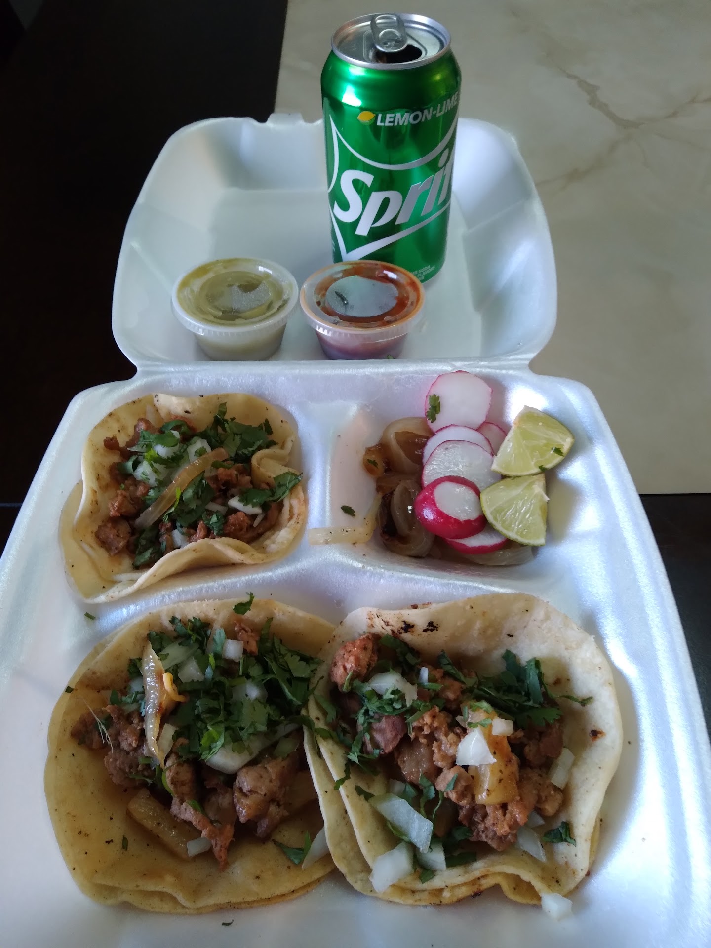 Read moreWe found this place on a whim as we were driving by and decided to give it a shot. Wow, we were really impressed with the food. We ordered 4 tacos asadas, 4 tacos al pastor, and we were definitely more than happy that we stopped by. It's literally a one man team, he does it all. The food tastes fresh and cooked to order, the tacos come with a side of grilled onions and radishes. Plus the red and green chili salsas are great. The red salsa is on the spicier side for sure but probably the best tasting salsas around packed with a punch of great flavor. We would highly recommend this food truck for sure. These are true Mexican street tacos. The man working, I'm assuming is the owner is very polite and friendly. Next time you want great food, stop by for sure. The place is located in the parking lot of auto zone, at the intersection of S.Public and S. Boulder Rd. South East corner...