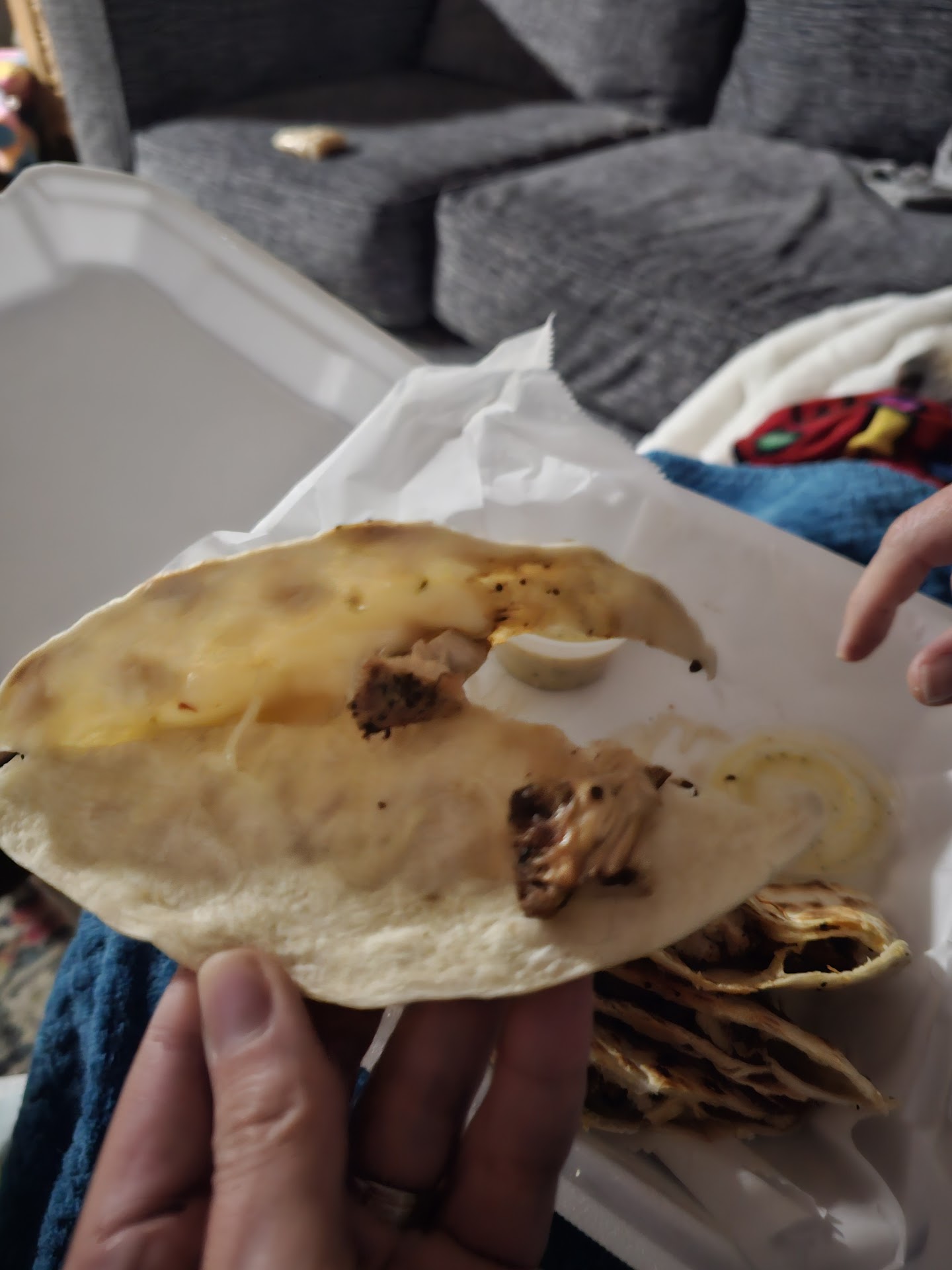 Read moreI am highly disappointed with my order. I purchased the chicken quesidilla. My tortilla was extra crispy, almost too hard and the chicken and everything they cooked with it was burnt. The only reason I didn't call to get a refund was because I didn't feel like driving there. This was an Uber Eats order. Highly disappointed!!!