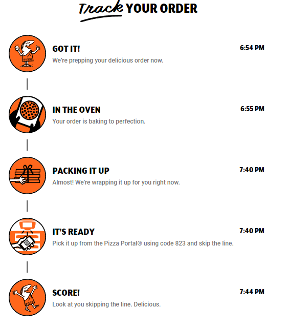 Read moreI placed an online order at 7:03pm EST (Transaction Reference #411732297) the email receipt stated the 2 pepperoni pizzas would be ready between 7:45-7:50. I arrived at the location at 7:47 and the pizzas had not gone into the oven. 2 customers placed orders at the counter and were told it would be 15-20 mins for their food. I had already waited for 40 minutes. I was greeted by a woman and asked my name and she said it should be too much longer. Approximately 8:05, I looked again at the woman and said it has been almost and hour and 20 mins. She came to help, and handed me to 2 pepperoni pizzas that had been on the counter since I arrived.