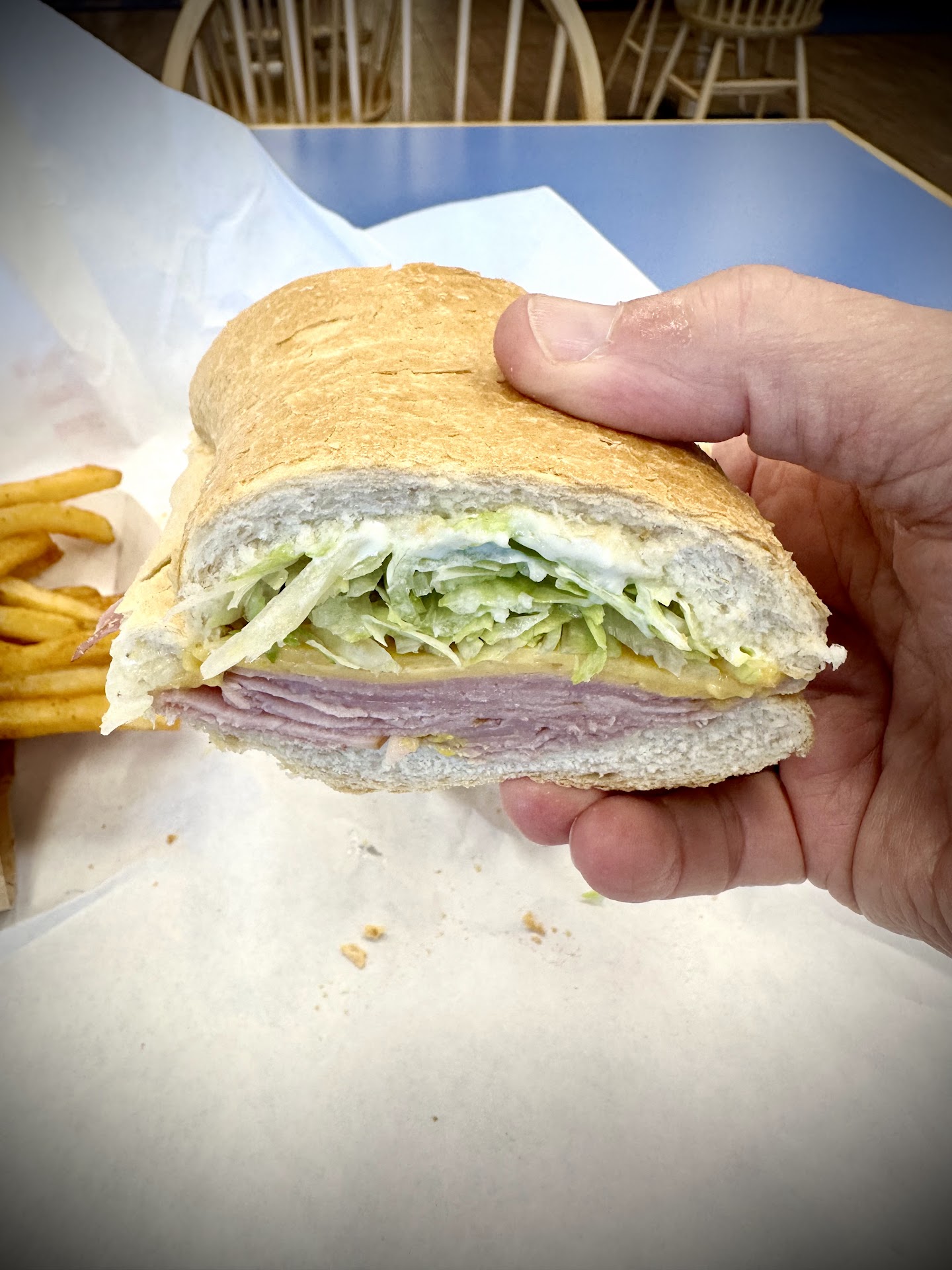 Read moreI've been eating here and occasionally picking up their amazing spiral cut hams for decades from back when my dad's friend owned this location. I have to say that the shrimp poboys here are among the best around and I know that's saying a lot! I was forced to get out of my shrimp comfort zone yesterday when the clerk told me that they were out of shrimp so I tried a half muffaletta sandwich and BOY was I glad I did. Not only was it LOADED with their amazing ham, and I mean loaded, but everything else about it was incredible included the bread. This muff is now perhaps my favorite in town and that also says a lot to me at least. I don't think my photo puts the amount of meat on this sandwich in proper perspective. Only buy a whole muffaletta anywhere if you want an entire surplus meal and more so here. It's the nature of this...