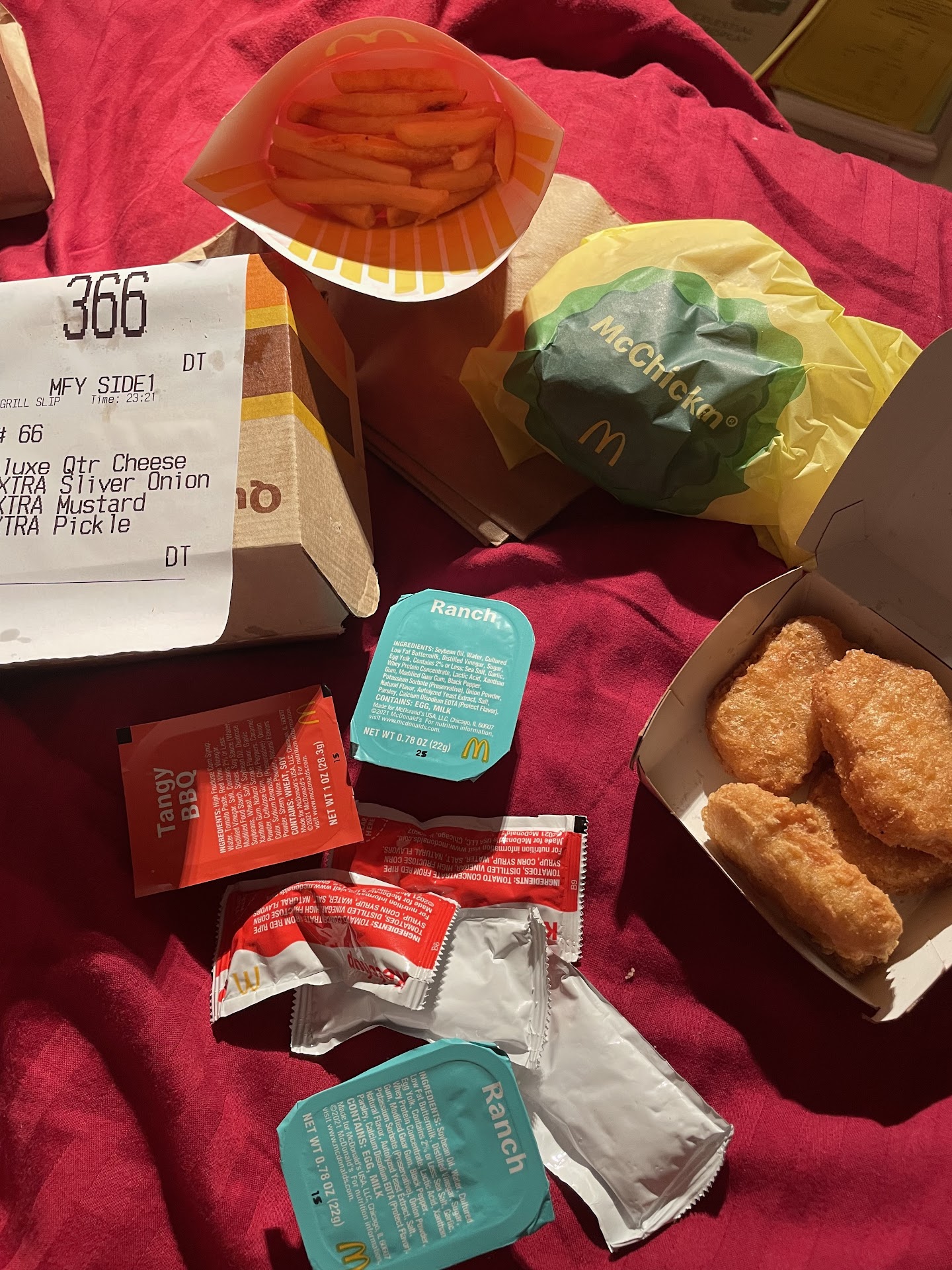 Honestly just one bad experience after another here. Not sure if anyone is managing the kids who work here, but on our most recent visit 4 meals were shoved into 2 bags, missing 2 Big Macs, and all of the nugget sauces, even though I had asked for extra when ordering, then confirmed with the person giving us our food at the window there were extras, only to open the bags and find none at all. I had a 20 piece nugget... no sauce. No ice in any of the drinks. I could go on and on...