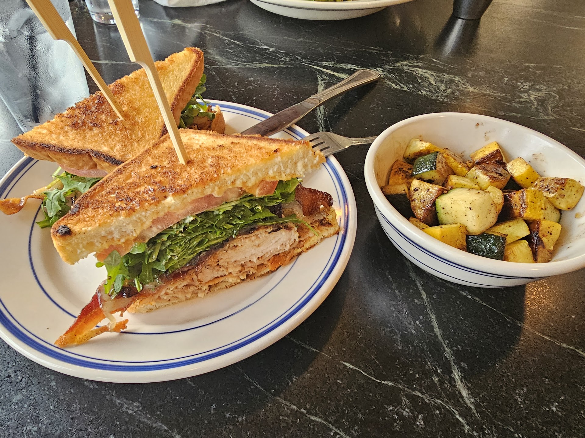 A little behind on posting the trip. First time going here. Wanted to try something different. The restaurant was clean and quiet. There were only 2 other people at the time. The bar has different options for drinks, and the menu is simple, which is nice when you have no clue what you want to eat. I went with the smoked turkey sandwich. It was huge, a lot of turkey, which made it kind of hard to eat, but it was still really good. My husband got a small millhouse salad, which was a very good size for a small order. He said the ranch dressing was very good and asked for another cup of it. I will say the decor is very odd on the inside, but I guess it makes it unique in its own way. There are 2 chandeliers only on 1 side of the restaurant. I didn't know what to expect due to the location being in River Ranch, which is more upscale than some areas...