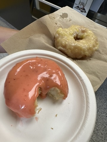 Photos of the pineapple, strawberry and then the raspberry donut. I'm looking forward to trying the...