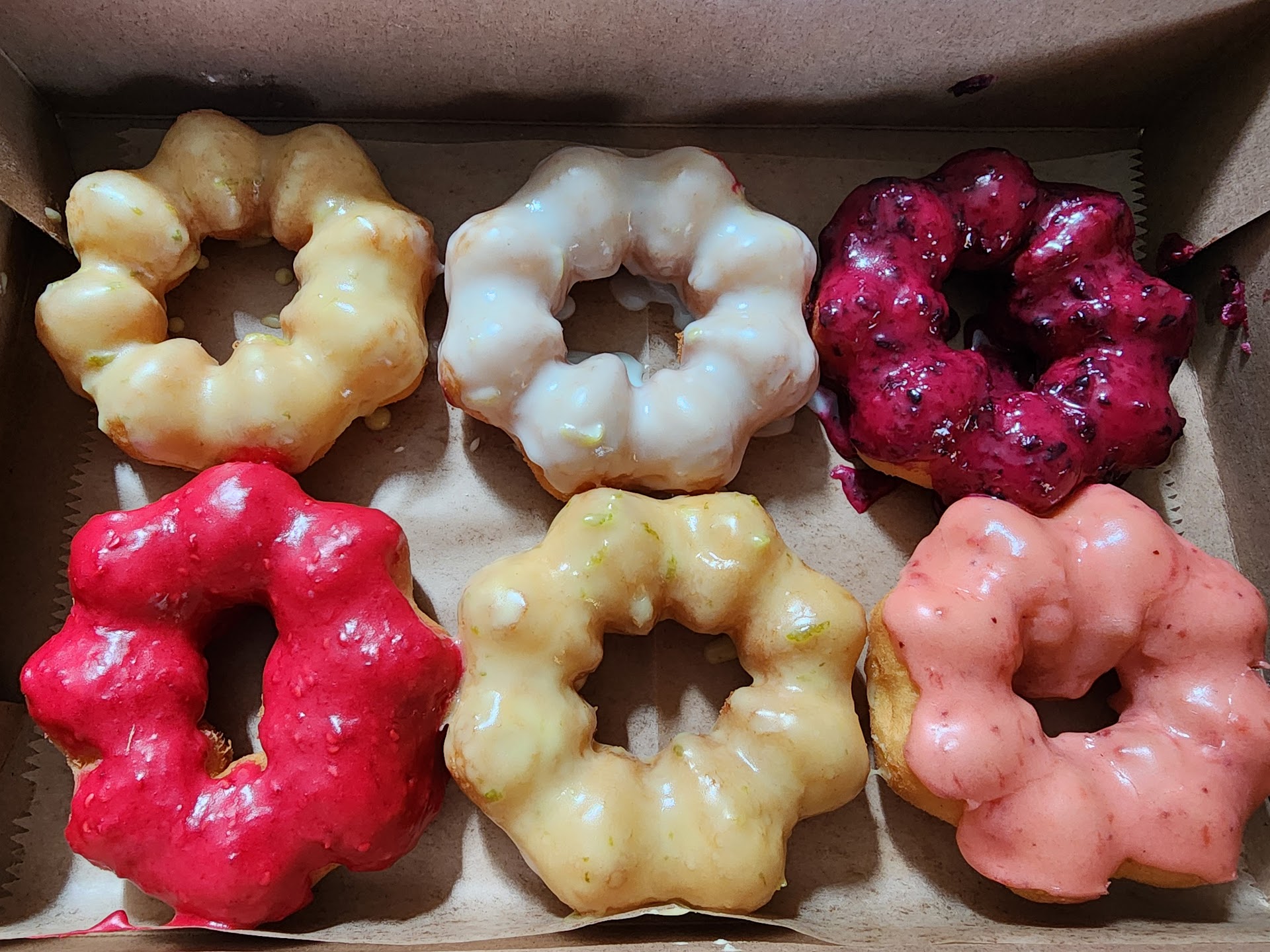 But the icing flavors are scrumptious, amazing and unique...that's what all these great reviews are about. You basically get a piece of cake smathered in a glob of tasty icing. But the icing still doesn't hide the meh batter and the not so great donut. Cool flavors..but I don't want a glob of icing. If I want something sweet, I'll go a real bakery next time for a great pastry as a few spoons of great tasting creative flavored sugar isn’t enough to eat these sweets. Wonderful customer service. No idea why other reviewers complaining about the price..basically an average slice of cake shaped as a donut for $2.50 to $3 is a good price. I'm glad I tried them but will not...