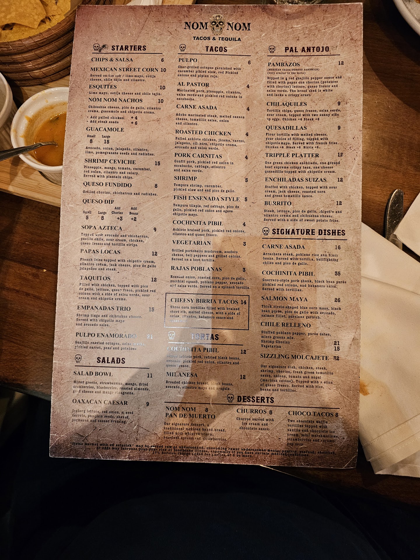 The problem with the consome seemed to have come from a lack of fat in the broth. It was too watery and turned wet the tacos into a mushy mess without retaining the broth flavor in each bite. Consome is made from the thickened broth the meat is marinated in with its spices, and provide the rich flavor. This taco needs a rework for sure.