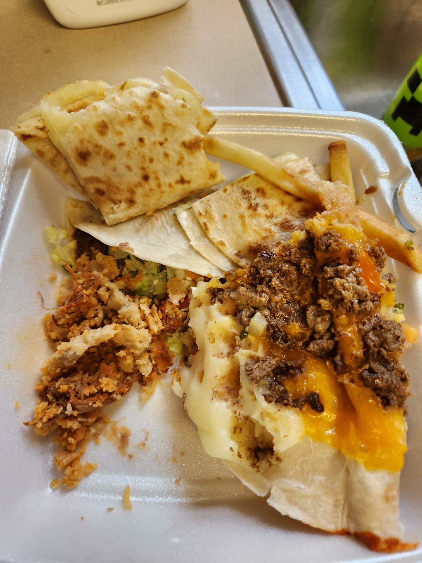 Let me start off by saying, the only reason I ended up at this restaurant was from pure curiosity. After trekking through a corn maze I was left with a choice between $10 off at Pepe’s or a free appetizer at Texas Roadhouse. Trying to weigh both options I did some research to find that Pepe’s had less than stellar reviews, but I needed to form my own opinion. My partner and I arrived at Pepe’s and requested a table. After a 5 minute wait the hostess took us to a booth. Seeing that the table was still dirty and littered with crumbs and cups the hostess proceeded to grab a equally as dirty damp towel from a random busser and halfway wiped the table down before reassuring us that the table had “just been cleaned off.” Eventually we were brought out chips and water, or what they consider to be salsa. We put in our orders which consisted of a large queso, chicken fajitas, a combination platter, and a side order of fries just for the heck of it. Our food came out and I was presented with a “warmer” which was a wobbly metal stand with a flame that my fajitas sat atop of. Whoever came up with the idea needs fired. Safe to say I was on the edge of my seat the whole time, and not in a good way. I was stuck between trying to balance my plate that was 5 inches off the table and trying not to burn the entire building down by accident. I counted maybe 6 pieces of chicken in my fajitas that was accompanied by an assortment of hamburger toppings, since their cheese of choice was shredded cheddar cheese. My partner barely ate any of his before offering me his plate. What he had was no better than a microwaved meal you’d find at Walmart. The flavor was non existent and the presentation was sad. 15 minutes into our meal a party that had been seated next to us stood up and left before even getting a chance to put in a drink order due to lack of service. The highlight of our meal was the french fries, which were actually pretty good. I’d like to say that’s a compliment buts it not due to the fact that we were dining at whats supposed to be a “Mexican” establishment. Save your money and go elsewhere. $45 for probably one of the worst excuses for Mexican cuisine. Support local restaurants. Glad we came so we know not to go back. Waitress was nice....
