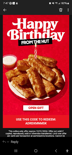 Read moreupdate*. The manger Jarvis ( I hope i spelled his name right) he personally gave me a phone call and offered me a credit to my account to make up for the inconvenience i had on my previous order. He was very kind and certainly made me happy about the situation. Great guy and i’ll continue to choose pizza hut. thank you!