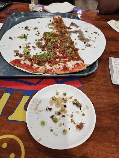 Later, someone gave us tiny paper plates (pictured). What happened to regular plates and regular silverware? The pizza was brought out on a lunch tray (pictured). What in the world??? THE PIZZA TASTED FINE, but everything else about the experience was simply awful! And, to top it off, we had to bus our own table!!! My teenage kids were devastated. This is not anything like our experiences when we visit "home" (Anderson).