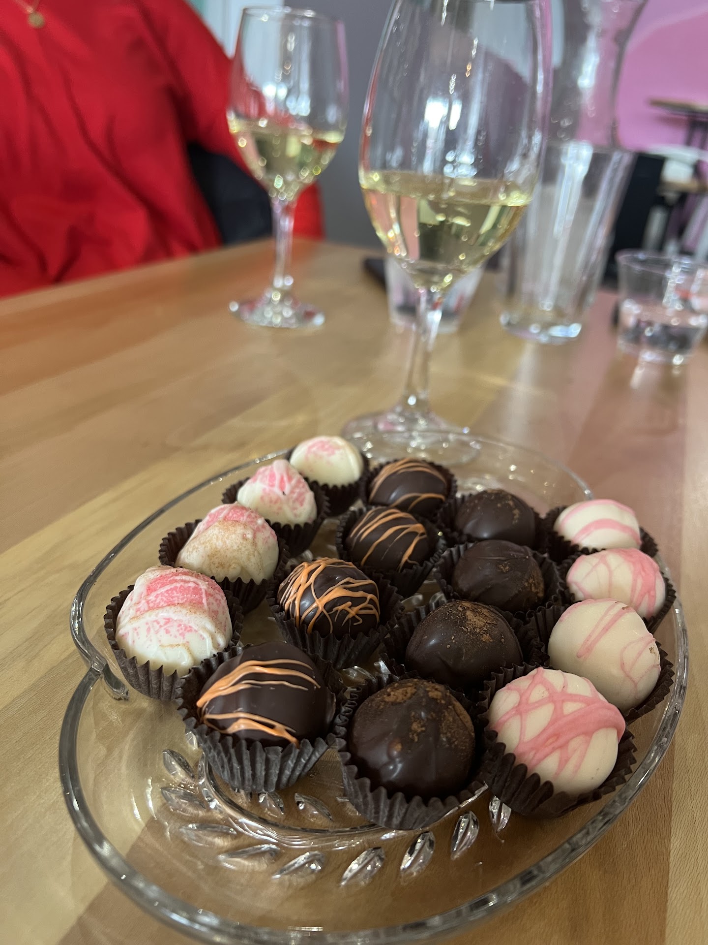 Great selection, great staff, great prices. I would highly recommend this place both as a sweet tooth fix and as a perfect go to gift idea for someone local. They have a lovely inside seating area inside as well as tables and benches located just outside their entrance if you want to enjoy your goodies outside. They serve good coffee as well as many other beverages, and definitely use higher end chocolate for their in house made desserts. The chocolate in their bark feels like a super solid texture at first, then just melts in your mouth in such a unique way. The music they have in the background is always pretty good and the prices are not overly high, and in some instances are just down right a steal. Catch them on their $1 truffle days, trust me. They also have an assortment of other vendor items, like some pretty good spice mixes or foiled sealed bags of "Unicorn Poop" and other similarly hilarious things that kids will enjoy. The also have this sweet corn puff type product that I can't really describe or name other than to call it dangerous. I would recommend pouring yourself servings rather than just setting the bag down next to you. Right now I'm snacking on their chocolate covered expresso beans while my wife eats their sea salt caramel bark. Also, do not sleep on their...