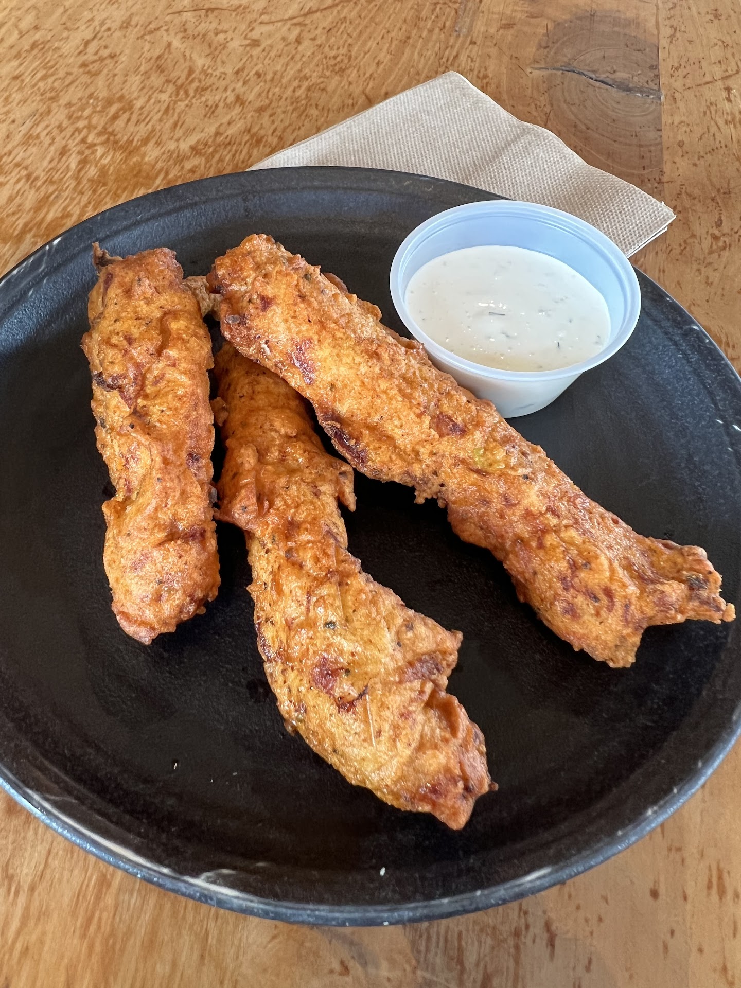 Went with the chimichurri burger and their famous haystack of onions and zucchini. My fiancé grabbed the lettuce-wrapped turkey burger with sweet potato fries, plus a refresher (free with their loyalty signup—smart move).