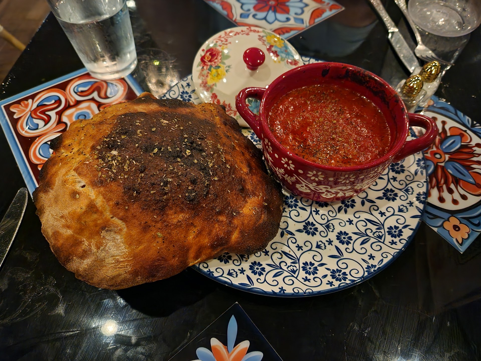 Who doesn't enjoy watching videos of delicious food from other countries? Just a couple of months ago my husband and I were wishing we could enjoy REAL Italian pizza like we had seen in these videos. And then we recently found this amazing authentic Italian restaurant right here in Lafayette! As we entered the doors we were transported to Sicily. The large painted mural of Mount Etna and various familiar Italian depictions, along with the grandparents and the owners and their little daughter, as she sits atop a large bowl of pizza dough, instantly made us think this food will be cooked with love!! We felt like we were at a large family gathering, with lots of laughter and chatter. There were hugs being shared by recognized faces of those being seated and you could feel the love in the room. We all know good food will always bring the love out! The blue and white chairs and fairy light candles reminds us of scenes of the Amalfi coast. The iconic colorfully painted ceramic heads placed along the extended open kitchen shelf, and multi colored large tile boarder running along the top of the surrounding walls, take you even further on your Italian visit. As we sat and watched the many happy people around us eat and compare the food put before them, we looked forward to our own first taste of a real authentic pizza. Our wonderful waiter answered our many questions and shared his favorite dishes for our future visits. We ordered a Margherita pizza and a cheese pizza for their simplicity and to experience the taste of a perfect crust, homemade mozzarella, and an amazing sauce. As we tore off a piece of the outer crust, we ate it bare, no sauce or toppings, to experience the flavor on its own. AMAZING! So crunchy on the outside and tender on the inside. We just stared at each other and smiled and enjoyed our first real taste of what a pizza is suppose to taste like, by starting with the best ingredients and preparing it with love. Nothing will ever come close to this crust. We totally enjoyed every bite. On our second visit we shared a pizza and ordered the rigatoni pasta Norma with grilled eggplant. DELICIOUS!! The eggplant was intensely flavored, maybe by removing the moisture content through a salting process that we've seen, and grilled to a perfect texture. No mushyness here!! Our next visit will be for the lasagna!!!! Can't wait!!!! I pray this little family will thrive and be here for years, and be added to our own wonderful family dining memories. Much love to you all. La famiglia...