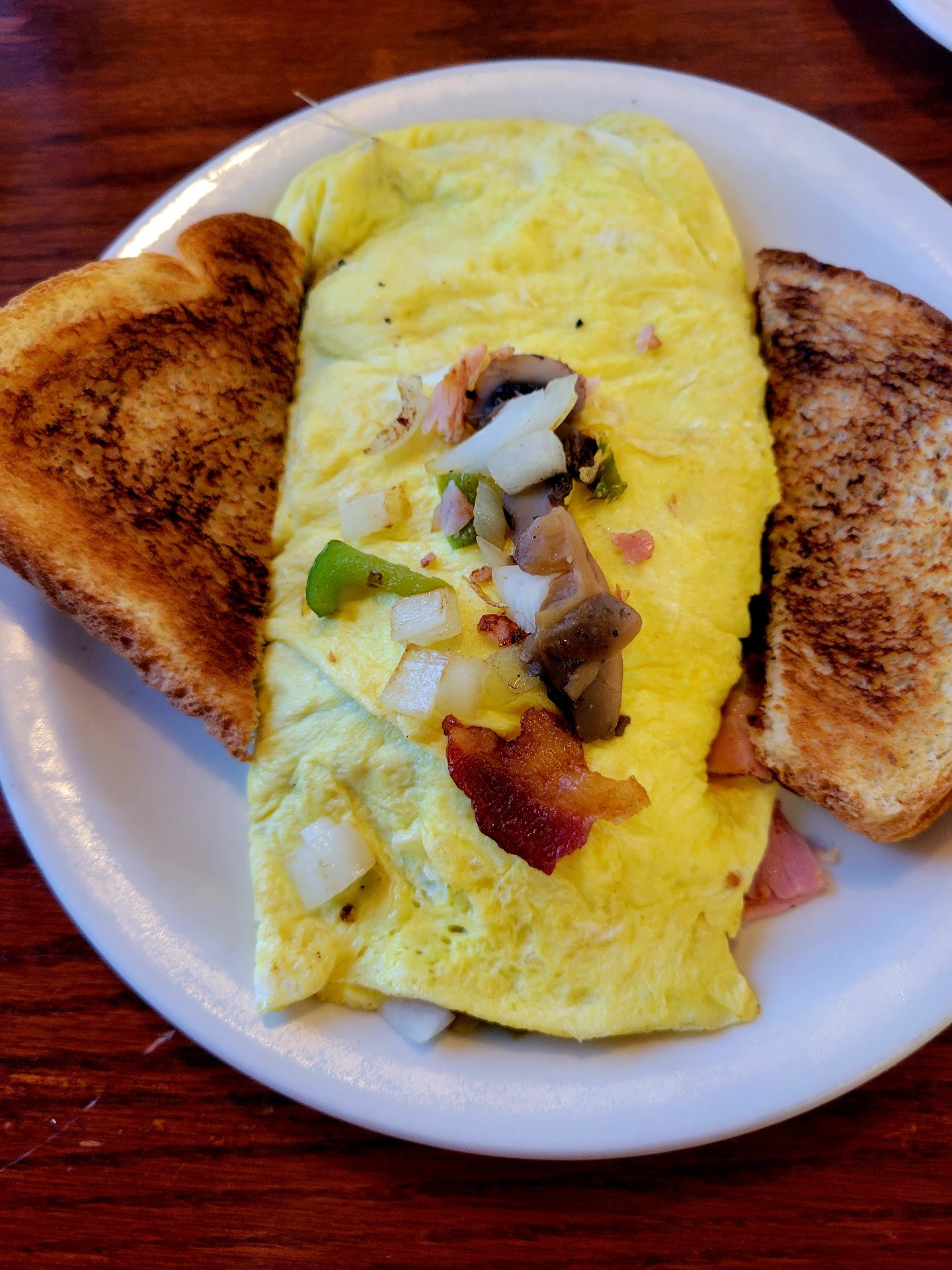 Read moreUpon entering the diner, we were greeted from behind the register area and were told to seat ourselves. There was plenty of seating available. The waitress promptly took our order and placed two glasses of water down. One of the glasses had hair stuck to the side of it. Needless to say, I did not drink anything while there. I ordered the House omelet. There was absolutely no seasoning in this omelet. I added salt, pepper, and hot sauce and it still didn't help much with the taste. My husband ordered biscuits and gravy. They looked delicious but had a bland taste to them. He also ordered scrambled eggs with bacon, hashbrowns, and pancakes. He did enjoy the eggs and hashbrowns. The prices were good for the amount of food you get. And I will say this place has regular customers. There were multiple while we were there. The waitresses knew them by name and already had their usual drinks ready when they entered the diner. That was nice to see. I could tell they enjoyed this diner, but it just...
