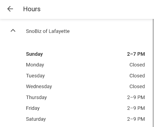 Read moreBeautiful Day for a cold treat Found this place online said open until 7pm Drove to the place Parked, walked up to the door Door is locked Sign says opens at 2pm It's after 4pm Was really excited to try something new with the family I can respect not being open on a Sunday, but perhaps this business could show respect back to their customers by updating their business hours online and...