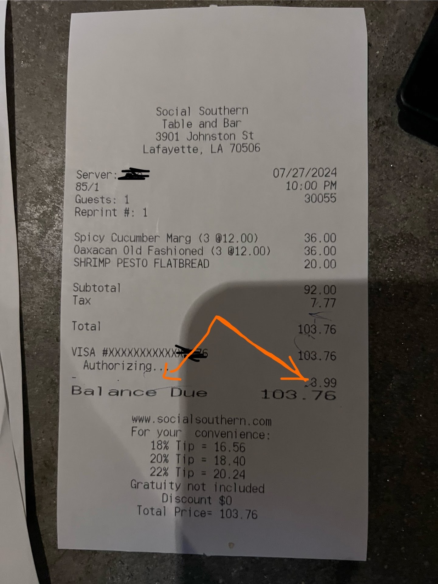 Read moreIt's been over a month since I've been there and I'm still annoyed with my experience at Social Southern. You walk in, nice looking place. The decor is how it should be- made to look like they cleared out a warehouse and then decorated it with modern retro fineries. It's a thing in restaurants these days. The urinal didn't flush in the men's room, it happens. If that were the only flaw, this would be a 4 star review. First glance at the menu, it's pricey. They have trendy names for trendy food, so I suppose it goes with the price. The prices certainly elevated my expectations. My niece and I both ordered West Bank Benedict, or something like that. It was an eggs Benedict with West Bank ham on a biscuit with the Benedict sauce. It had been several years since I ate eggs Benedict, so I couldn't remember exactly what to expect but I had a general idea. Both of ours came out hardly at room temperature, if at all. I took 2 bites from it, couldn't do it, politely sent it back. The manager and the waitress were very apologetic, comped the meal, and added free dessert. Take 2 came to the table, the ham was hot but the sauce and biscuit were hardly room temperature again. It was noon in early June, they could have put the plate outside and it would have been significantly warmer. I was already running late on account of them getting a 2nd try, eating cool mayonnaise-roux sauce on a cool biscuit with warm ham, so I was too heated to give them a 3rd chance. I ate the food like I would have eaten field rations back in the Marine Corps- it's sustenance and your next meal isn't a guarantee. We had a large table and the general consensus was that it's too pricey for the food and level of service. Half of our group said they won't be going back. The other half didn't say anything one way...