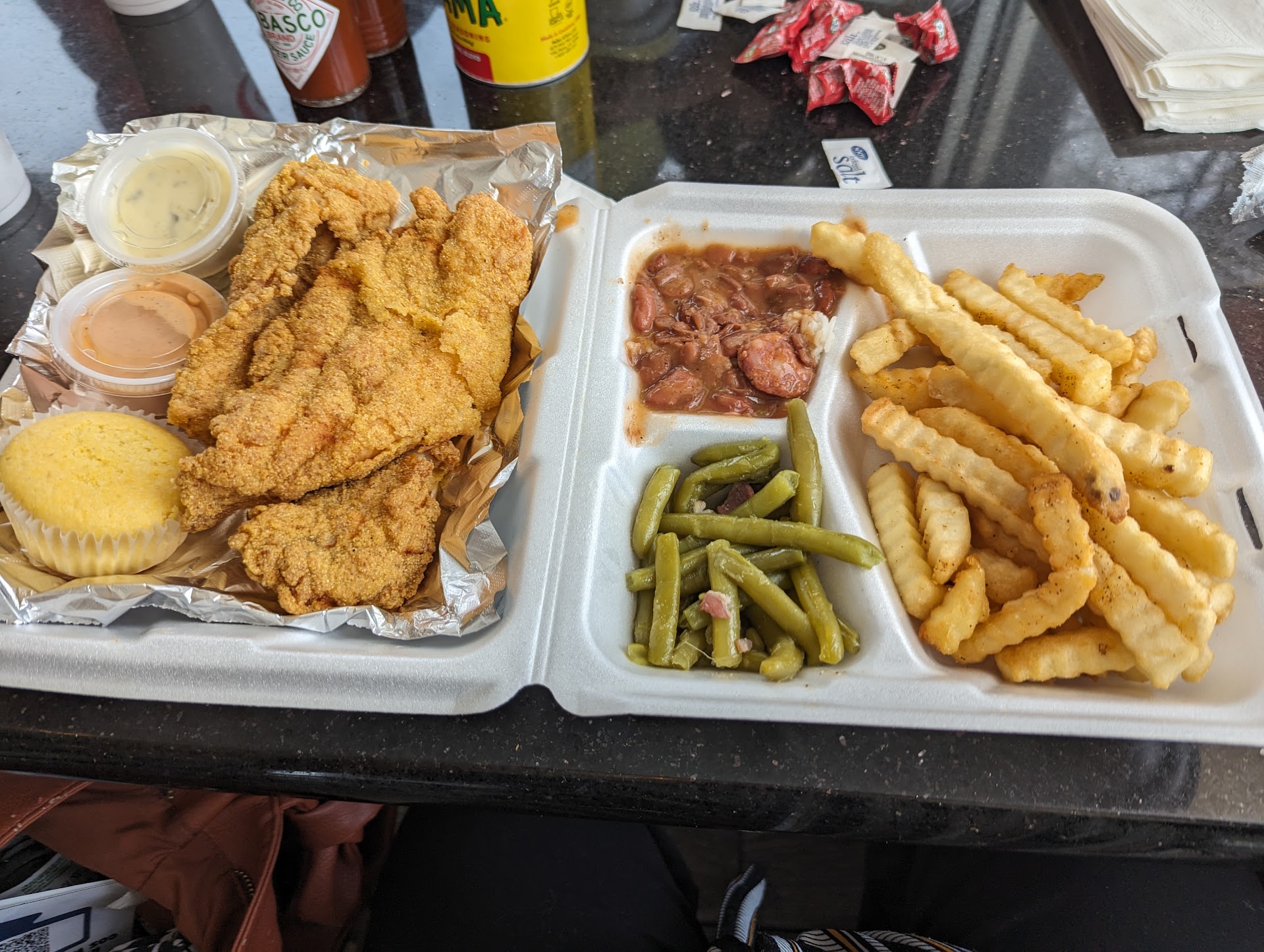 The quality of the food itself is nothing to boast about. We chose ribs and chicken, both were heavily under seasoned. The âbbqâ flavor does not continue through the meat. It seems like the meat is cooked with no sauce or flavoring, and then heavily coated before you get it. The inside of the meat was bland. The sides arenât worth writing about. The rice dressing was okay, but crunchy undercooked onions kind of threw it off. The meal was comparable to something you find in the middle of no where in Arkansas, from a shop that claims to be Cajun but doesnât add spices to keep the locals happy. Definitely not Louisiana or Texas style bbq at all.