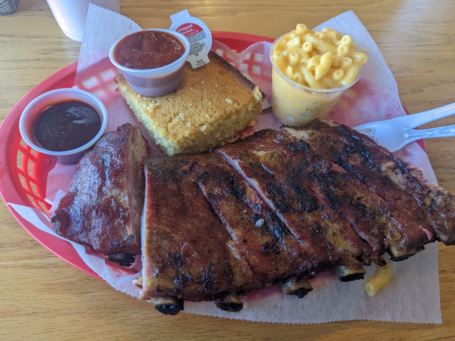 Read moreFor Midwest BBQ it wasn’t bad but could have been a lot better for the price $18~$19. I got a two meat platter of brisket and smoked sausage with the beans and potato salad. These are my favorite items at any bbq restaurant and what I judge the quality of the restaurant by. The bbq sauces were pretty good, I used the two spicy sauces and didn’t try the others, I imagine that the other sauces weee a subset of the spicy sauces. The brisket wasn’t very smoky (no smoke ring) but had a decent flavor. The smoked sausage was just like the Eckrich Farm smoked sausage that you can buy at Walmart, definitely don’t recommend the smoked sausage. The beans were okay but I made them a lot better by adding bbq sauce to them. The potato salad wasn’t anything special and seemed fairly store bought (don’t recommend). Finally, the sweet tea and regular tea tasted watered down. Overall it wasn’t bad for Midwest bbq but they could try a little bit harder and have much better quality food...